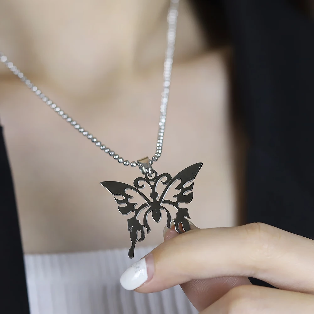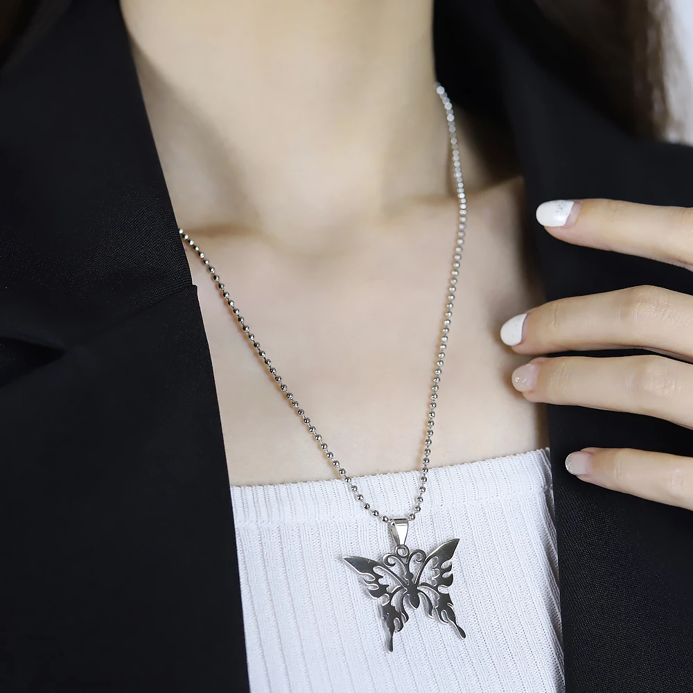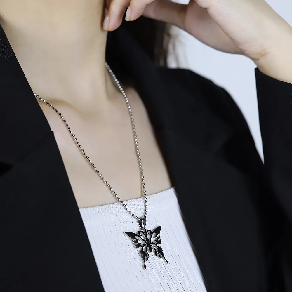 Sexy Butterfly Pendant Necklace Stainless Steel Goth Jewelry Men Women Punk Necklace Commemorate Costume Jewelry Sale