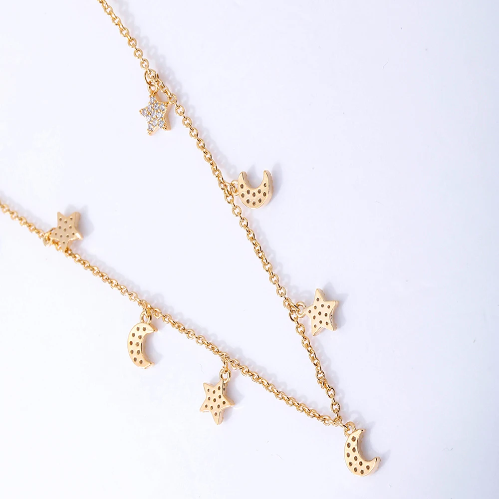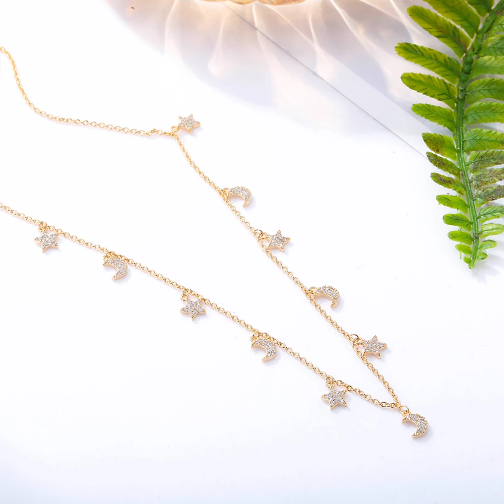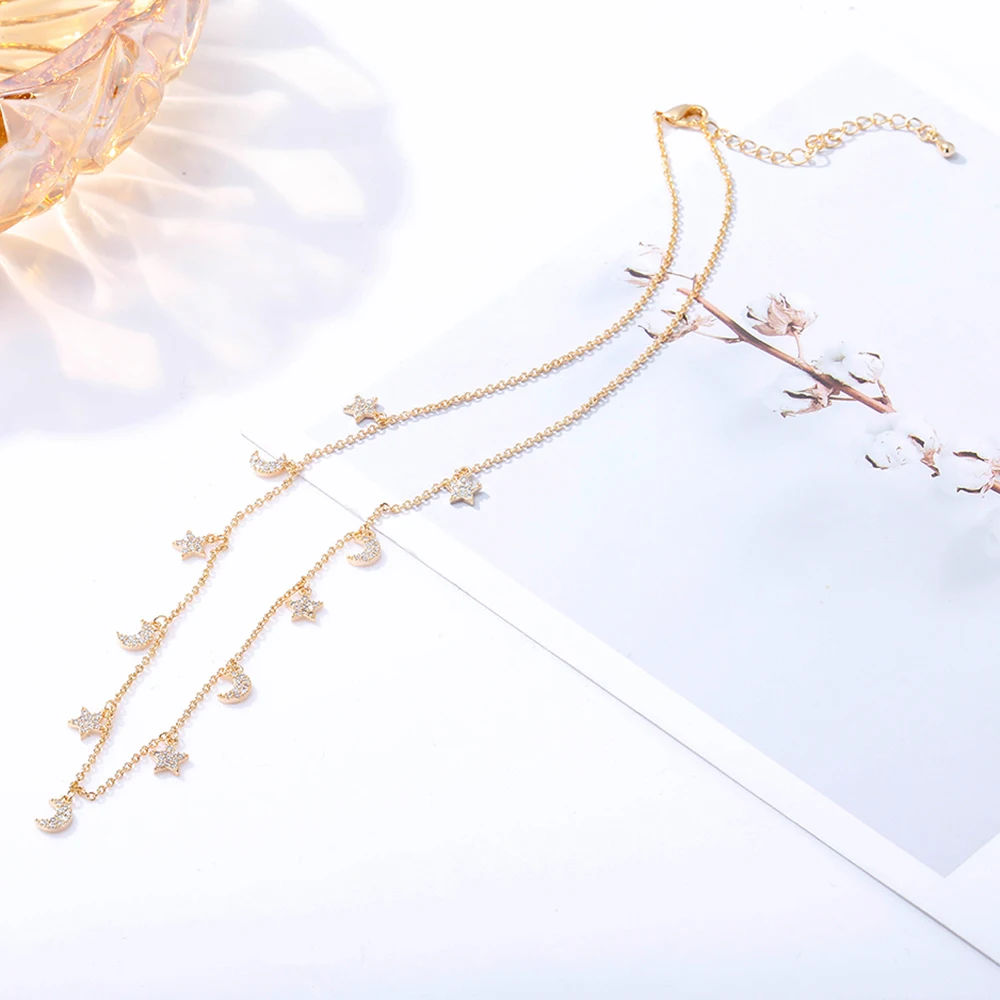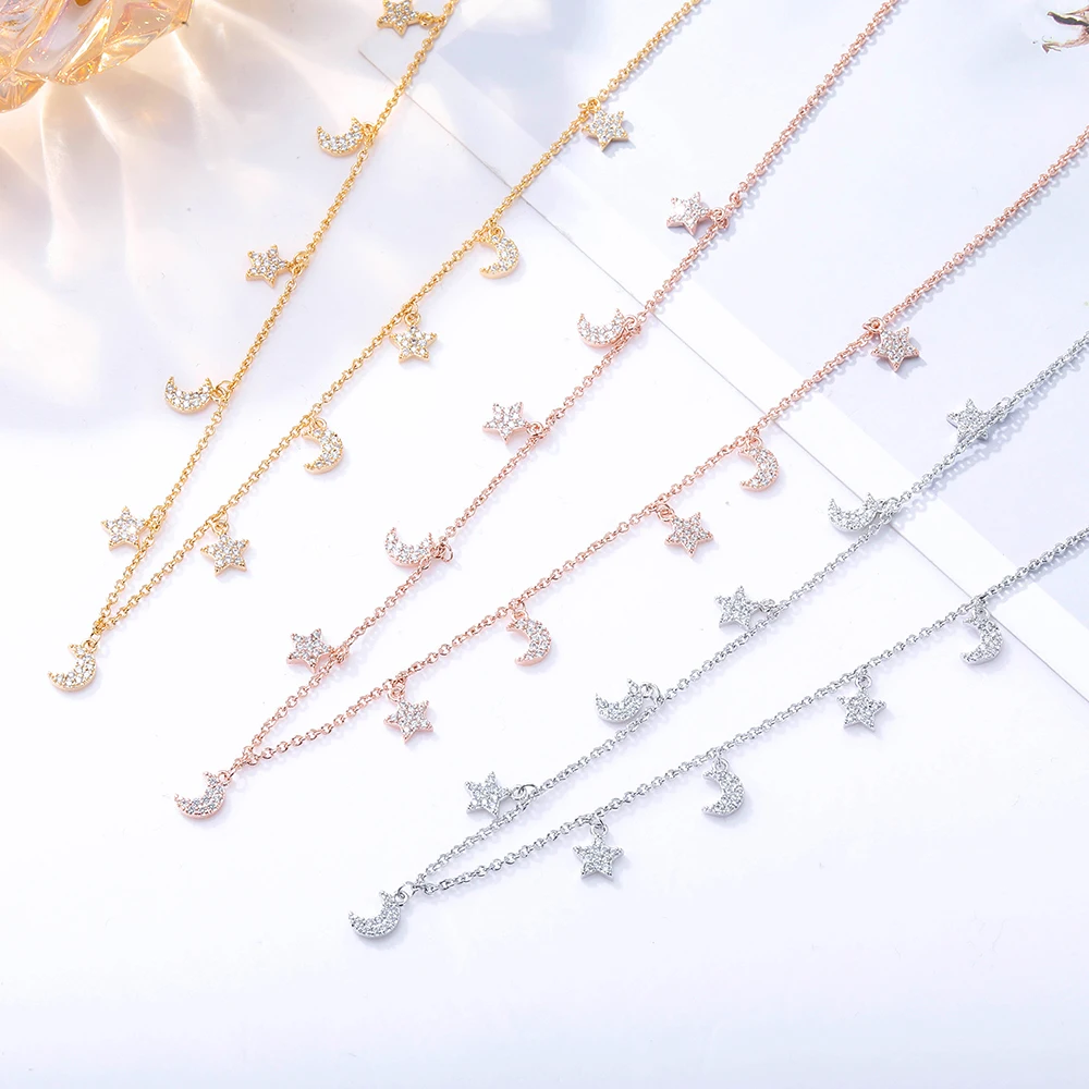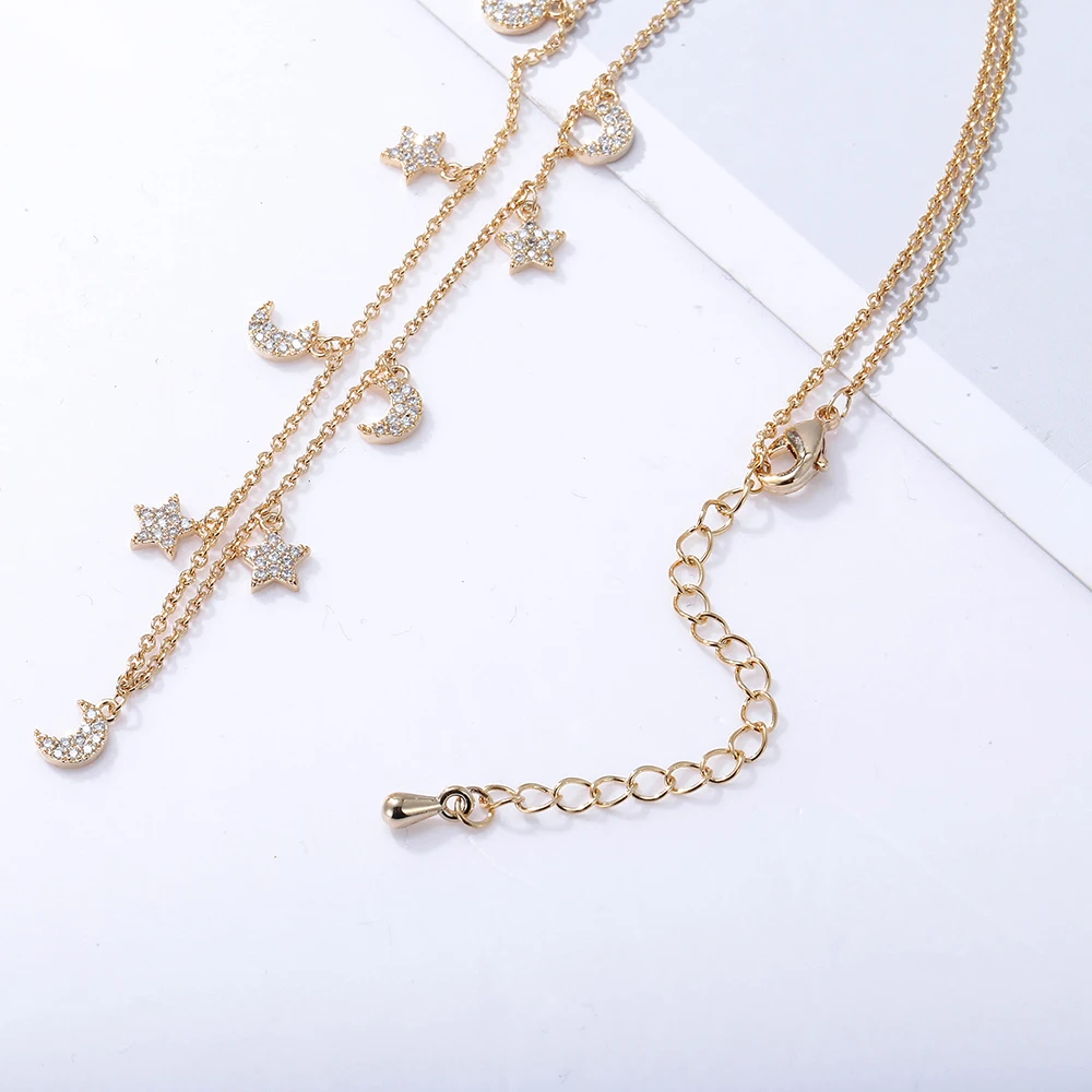 Sexy CZ Moon Star Fine Chokers Necklaces For Women Multi Charms Crystal Copper Chokers Collares Party Jewelry
