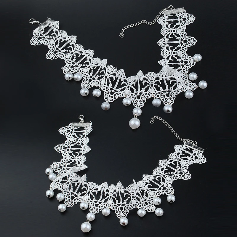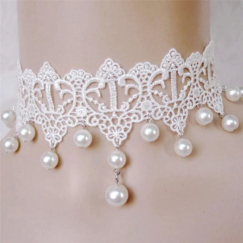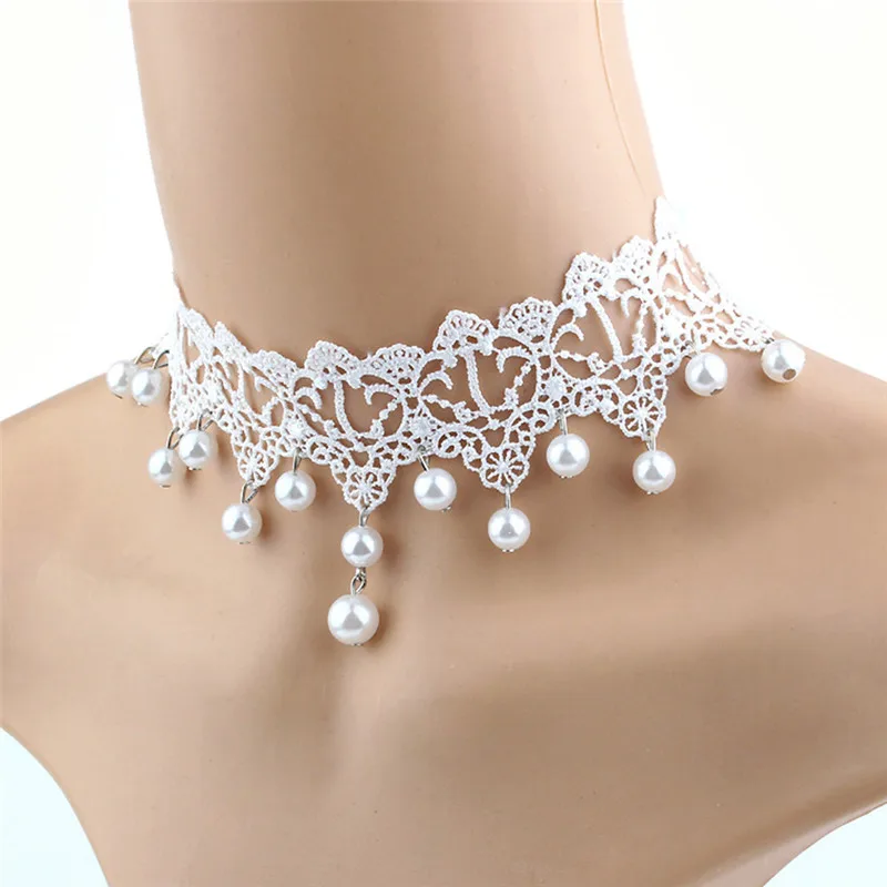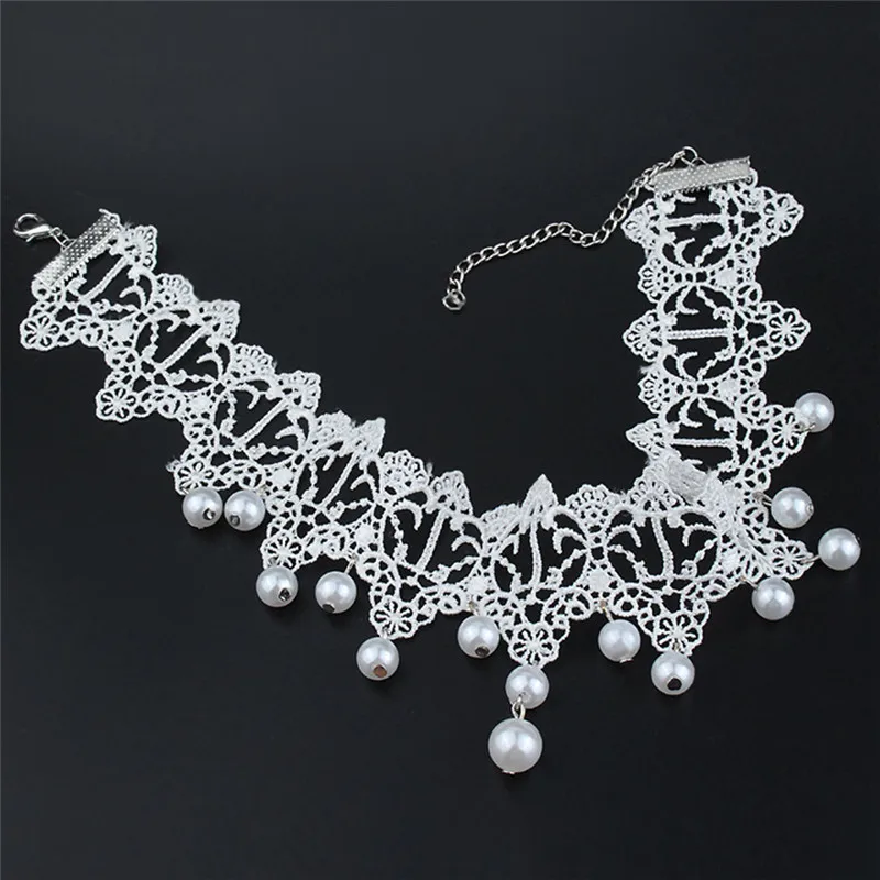 Sexy Gothic Chokers Pearl White Beads Lace Pearl Necklace Choker Necklace Vintage Women Bride Jewelry Romantic