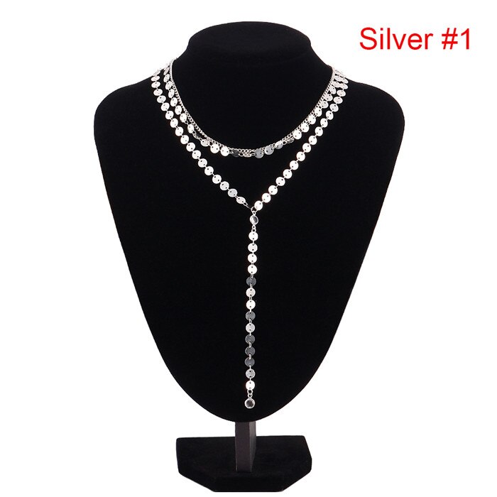 Sexy Multilayer Sequins Crystal Rhinestone Tassel Pendants Chain Necklace Choker Collar Women Jewelry #235641