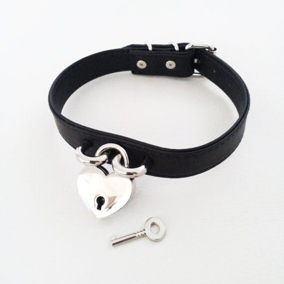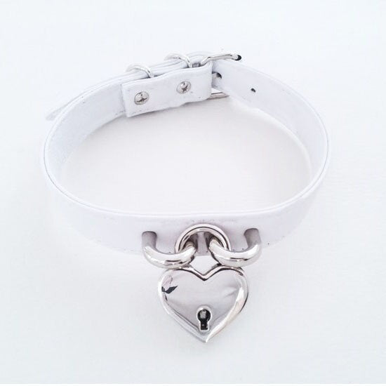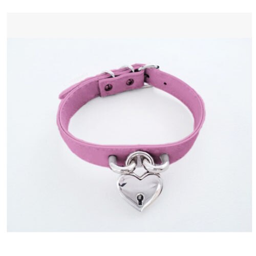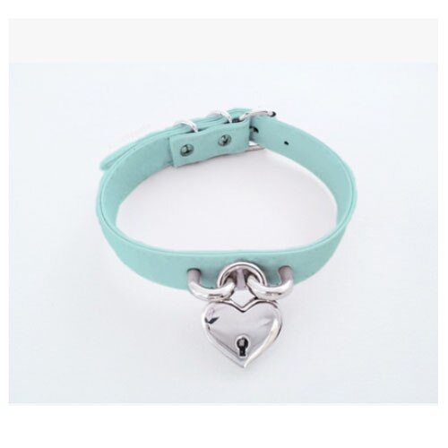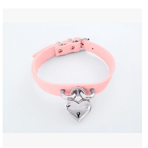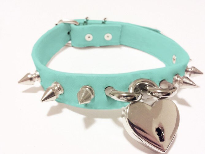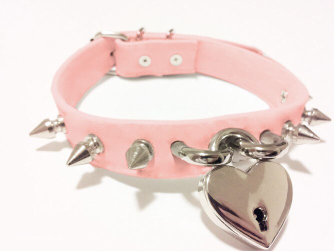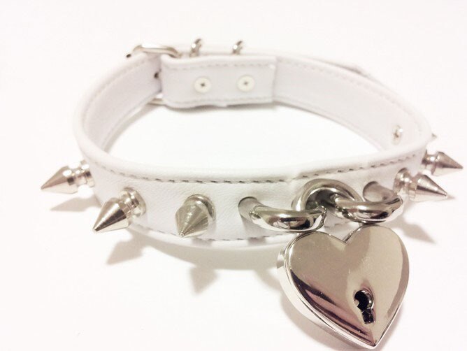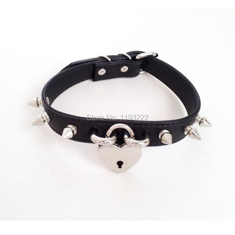 Sexy Spikes Necklace Pendant, Handmade Harajuku Lock Key Safe Heart Choker, Punk Goth Stud Letaher Collar Necklace