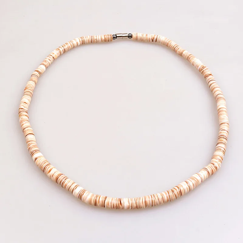 Shell Necklace for Men & Women,Real Seashell Necklaces with Round Clam Chip Shell Beads, Hawaiian Surfer Jewelry