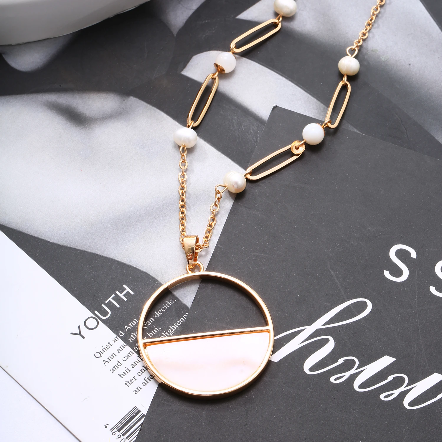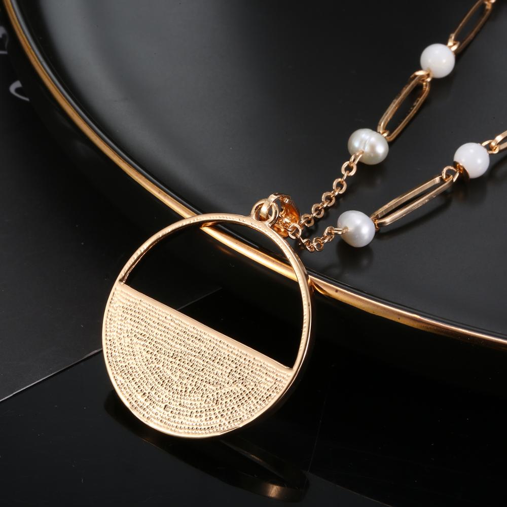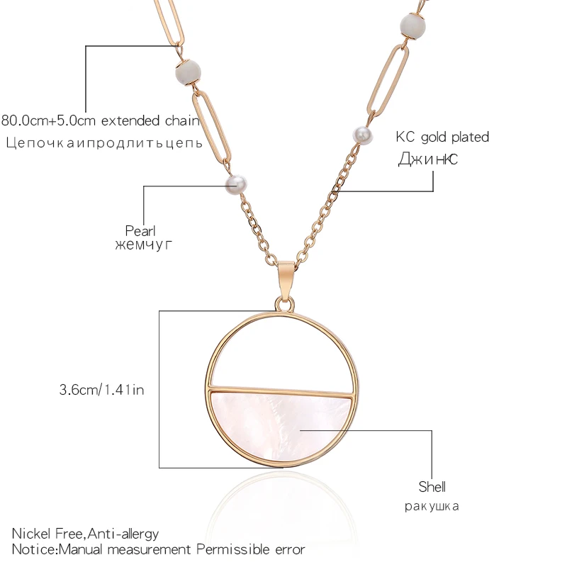 Product points: : Simple Pearl Shell Round Pendent Long Sweater Chain Necklace