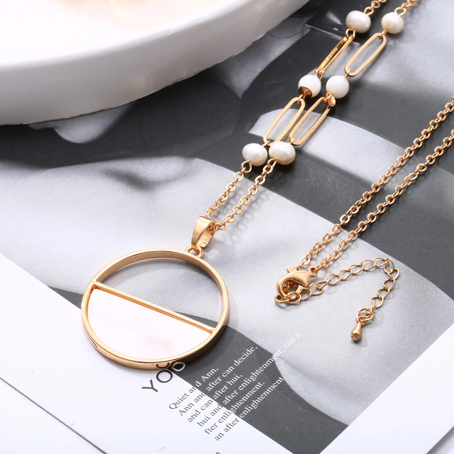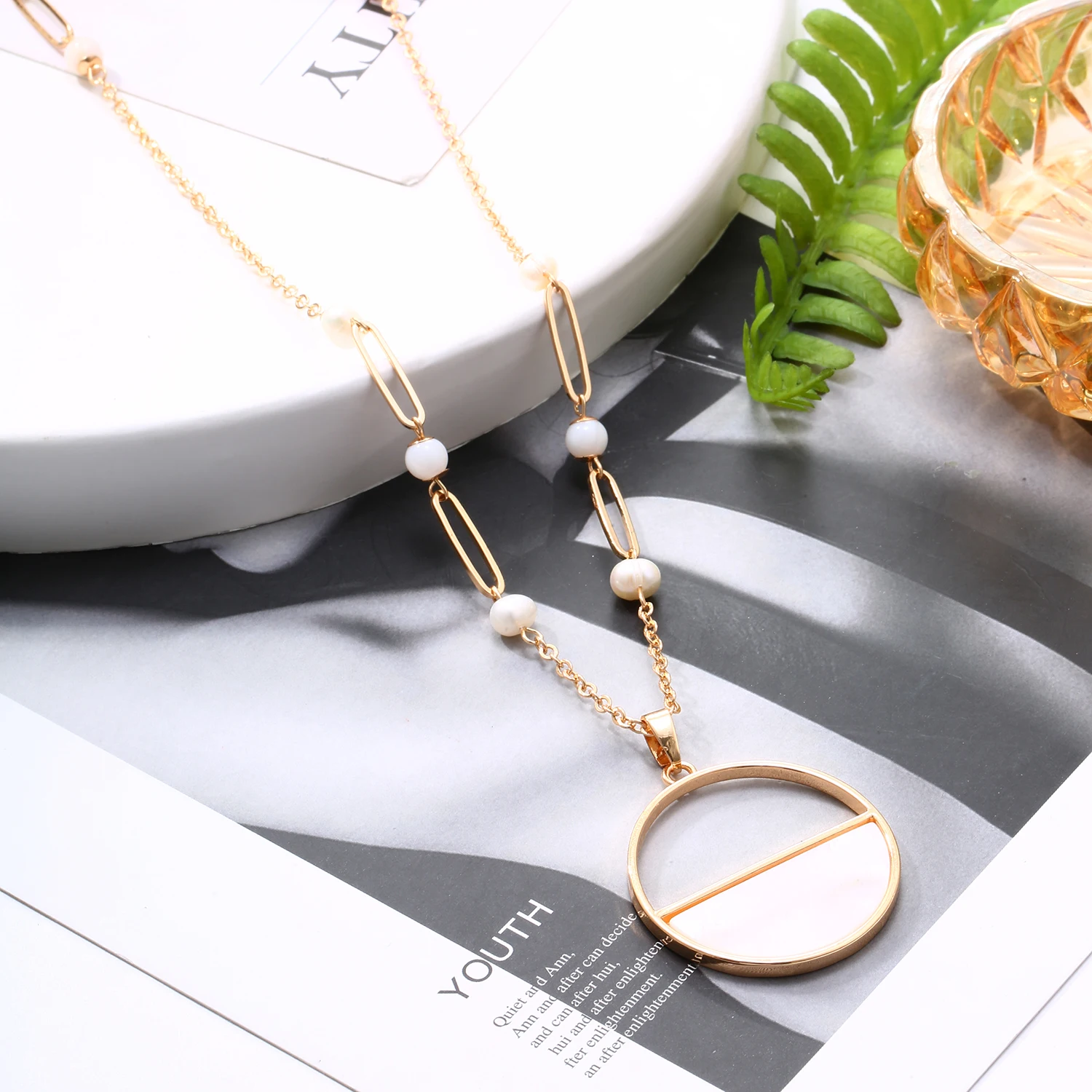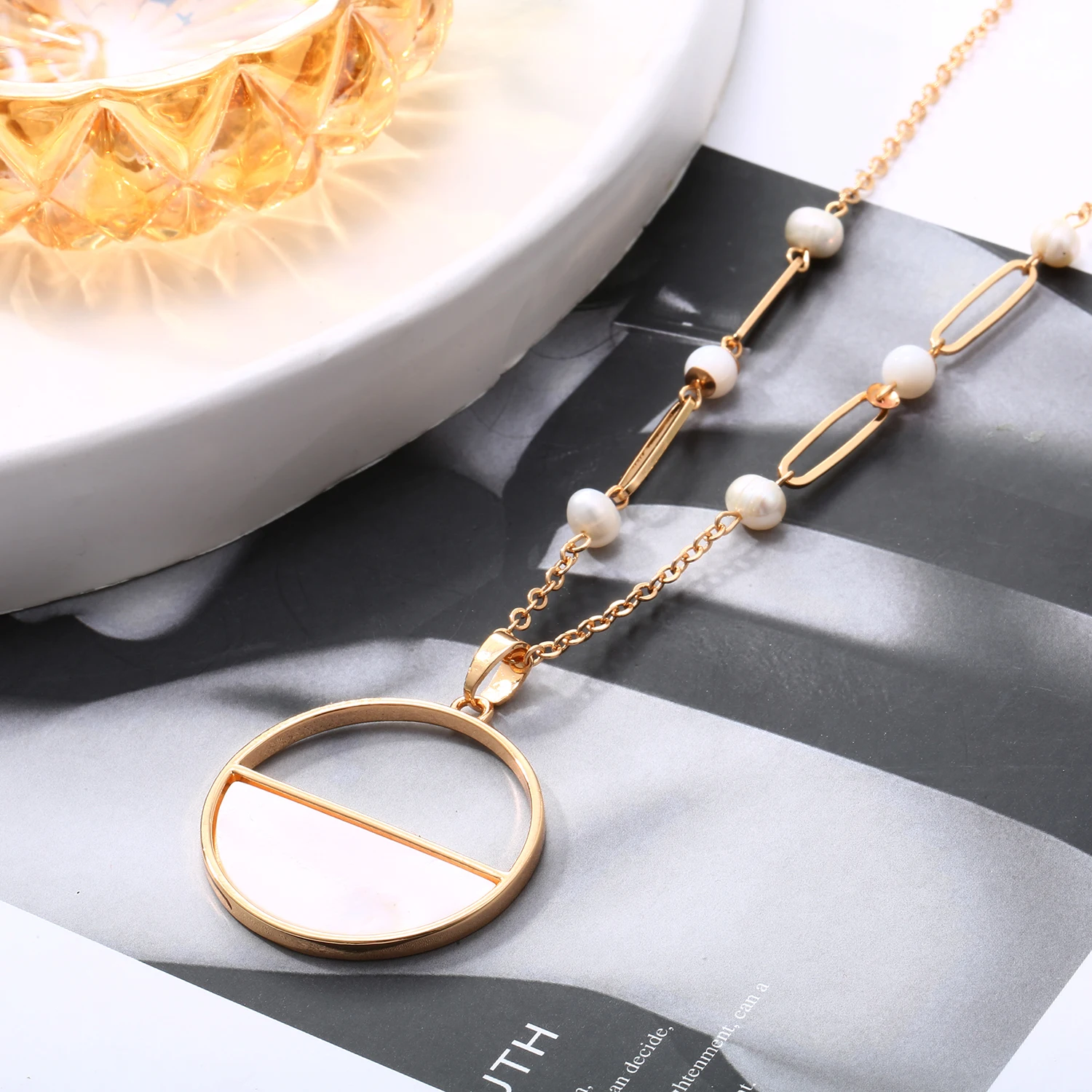 Product points: : Simple Pearl Shell Round Pendent Long Sweater Chain Necklace