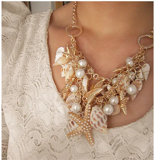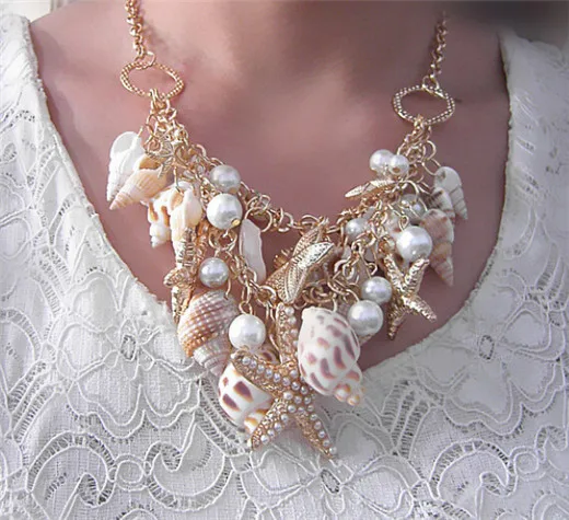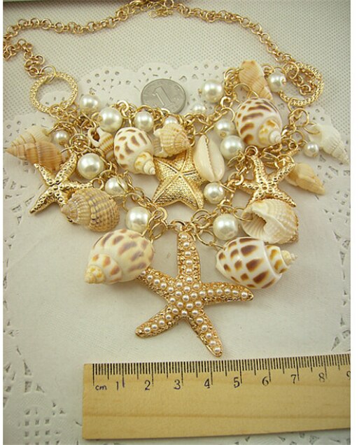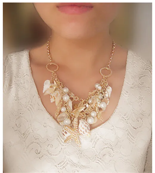 Shell Starfish Choker Necklaces Multilayer Pearl Statement Necklaces For Women Beach