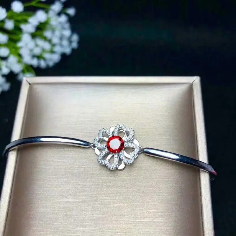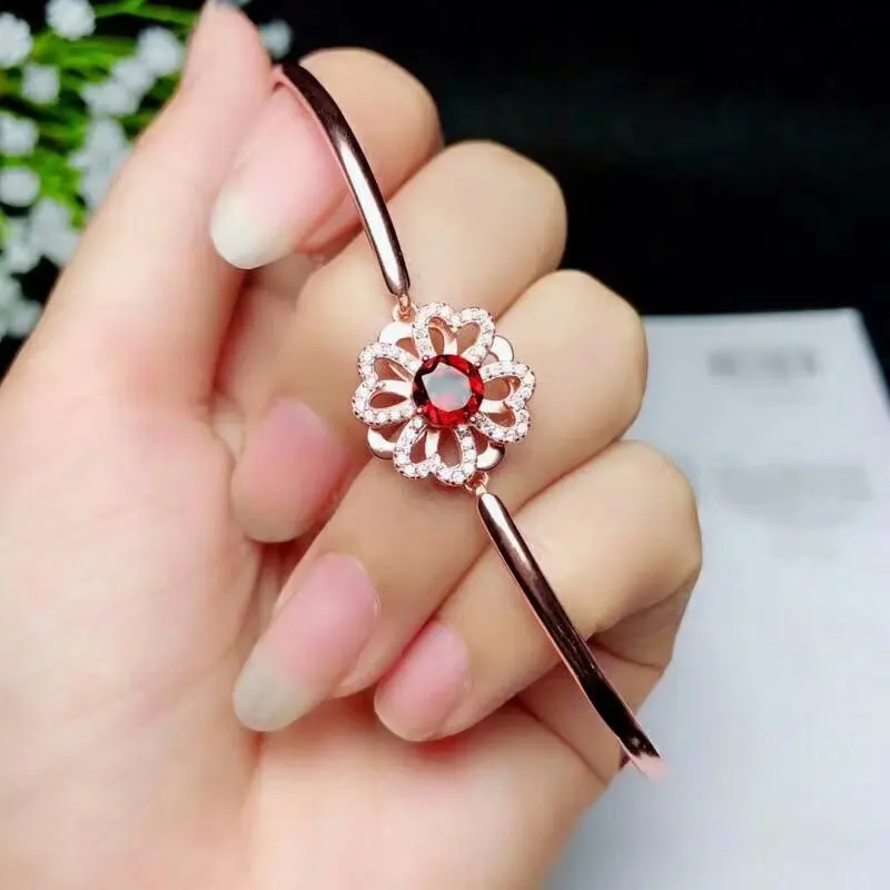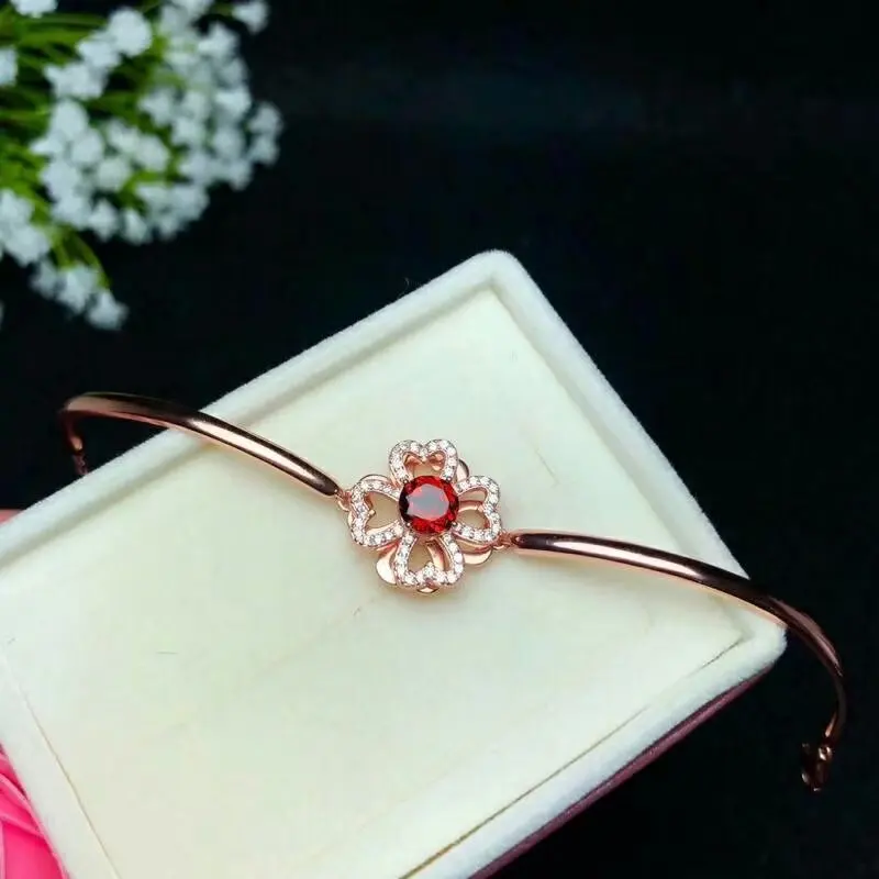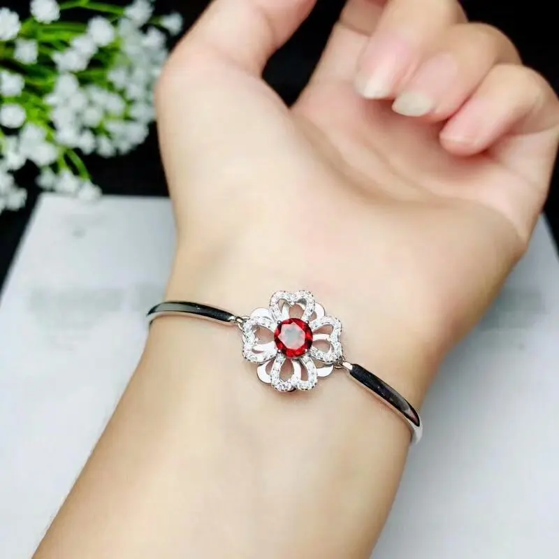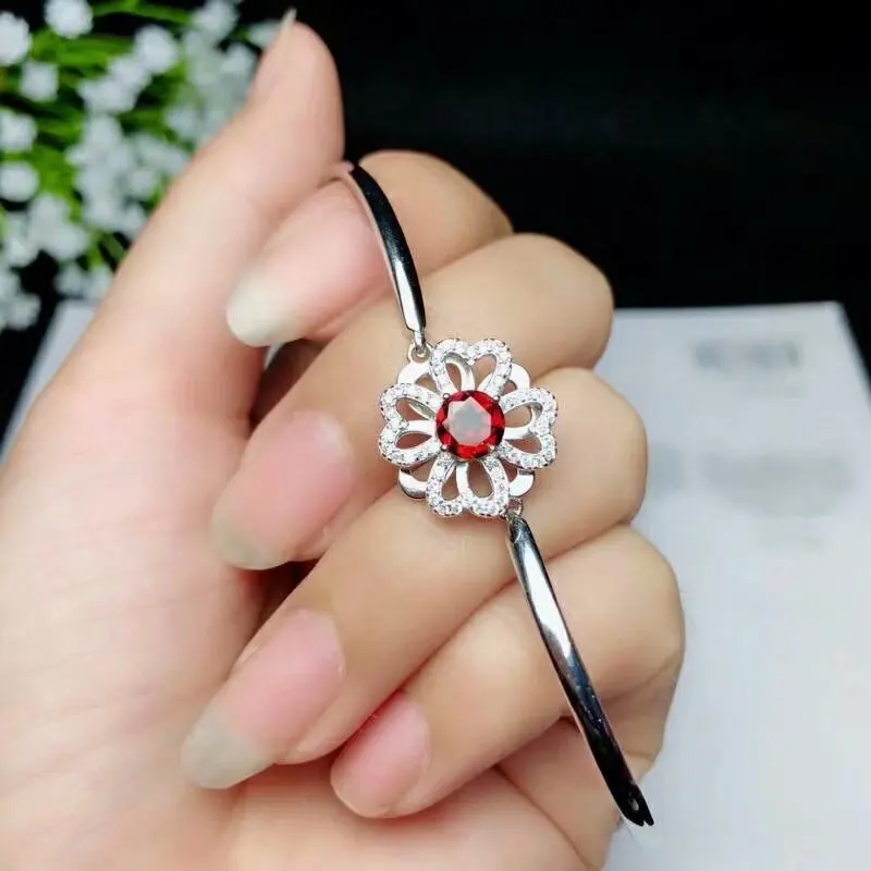 925 sterling silver natural real garnet Bracelets fine jewelry classic women plant gift new 6*6mm bl060608ags
