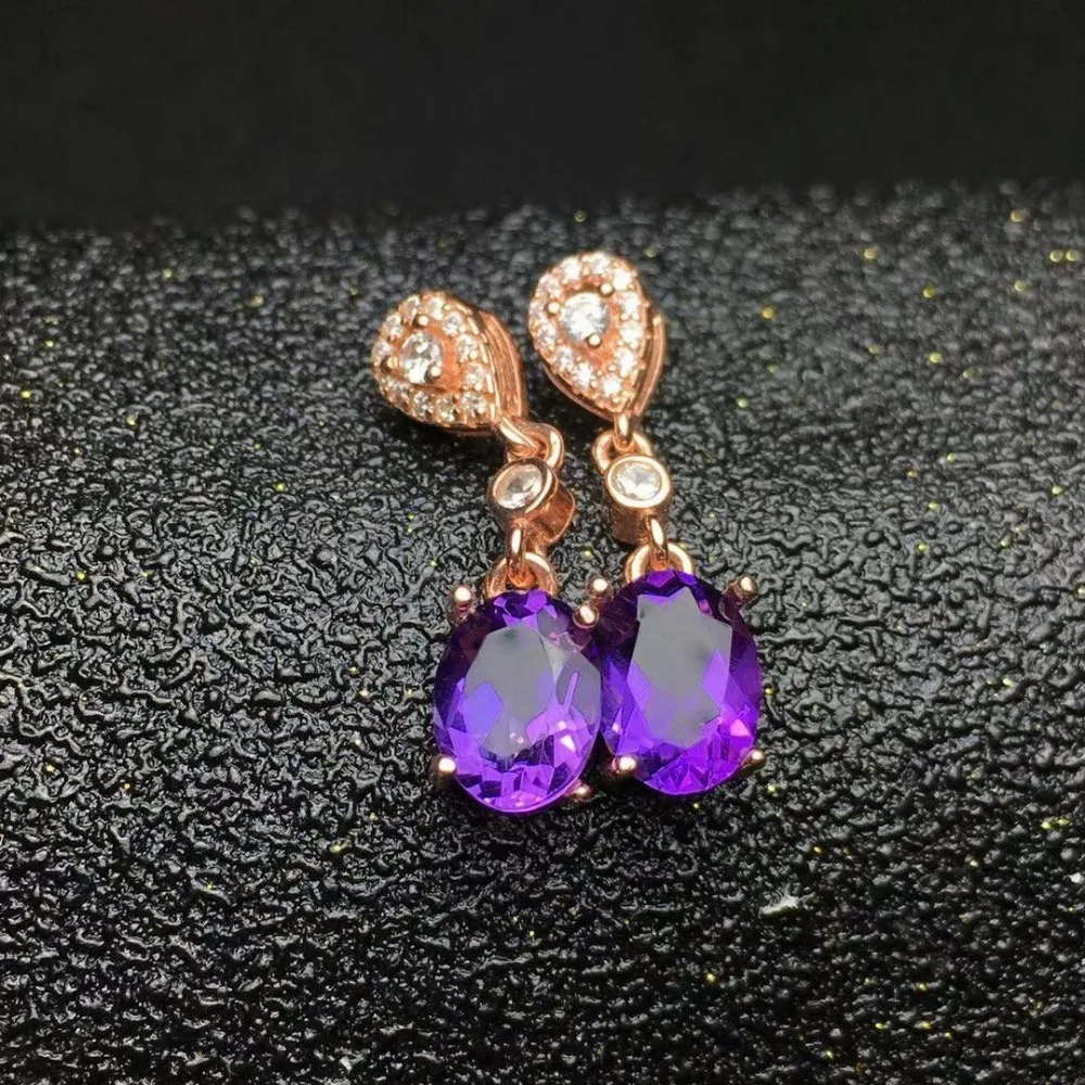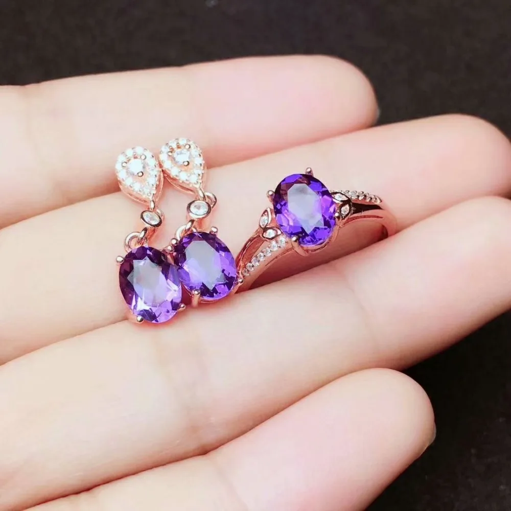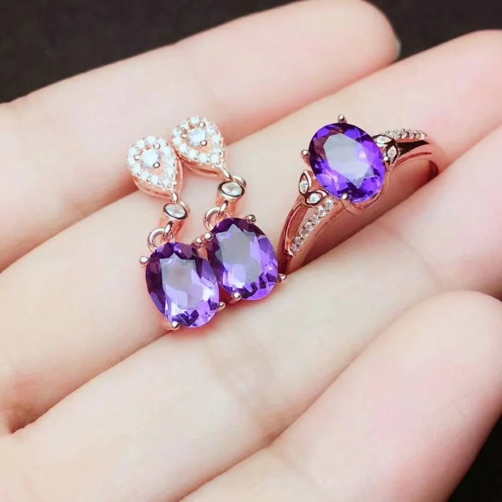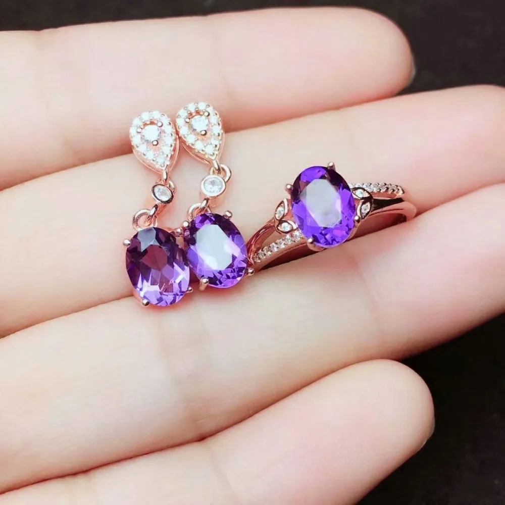 925 sterling silver Piezoelectricity amethyst Rings earrings fine Jewelry women wedding open send necklace xktz0608agz