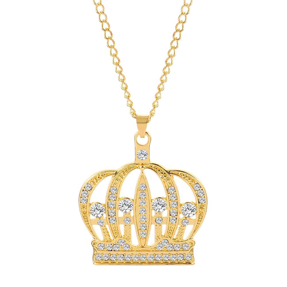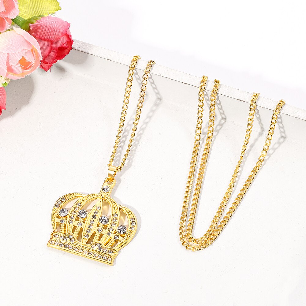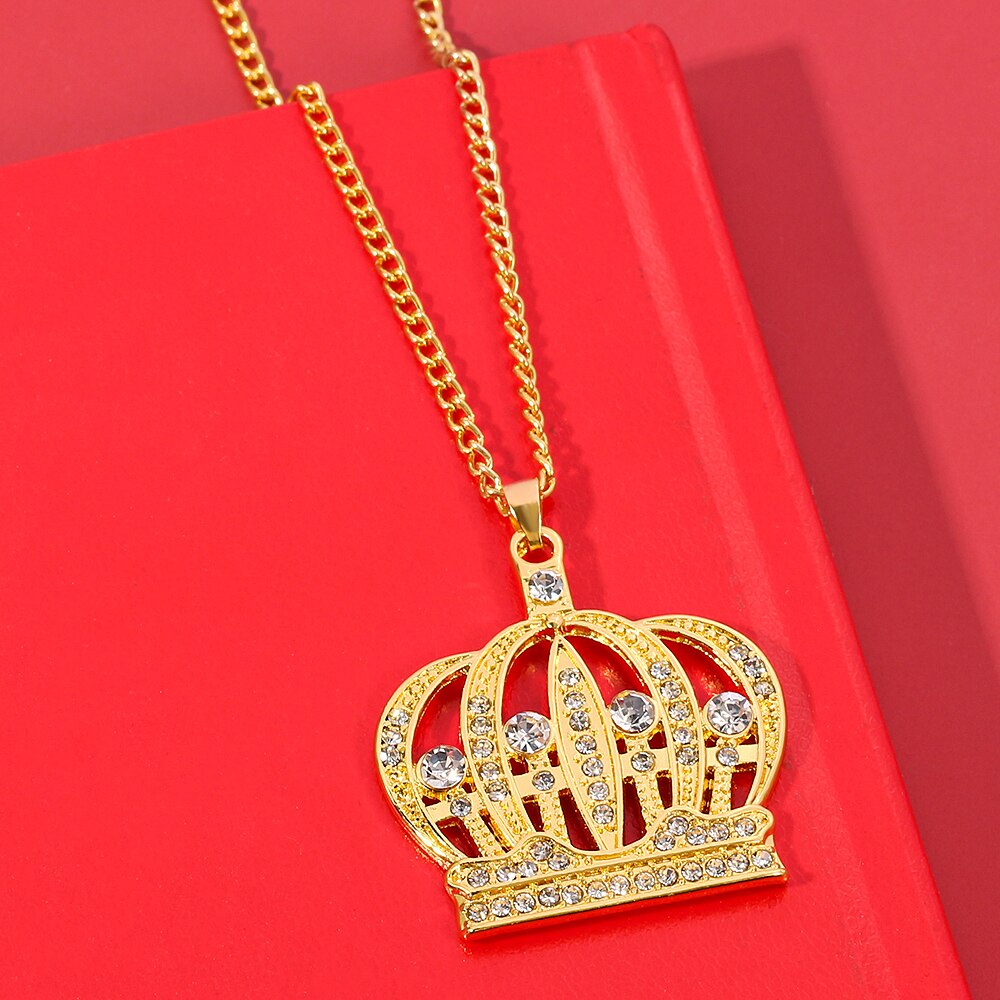 Shine King Crown Rhinestone Necklace Hip-hop Charm For Man Women Bar Rock Collar Necklace Cool Jewelry Accessories