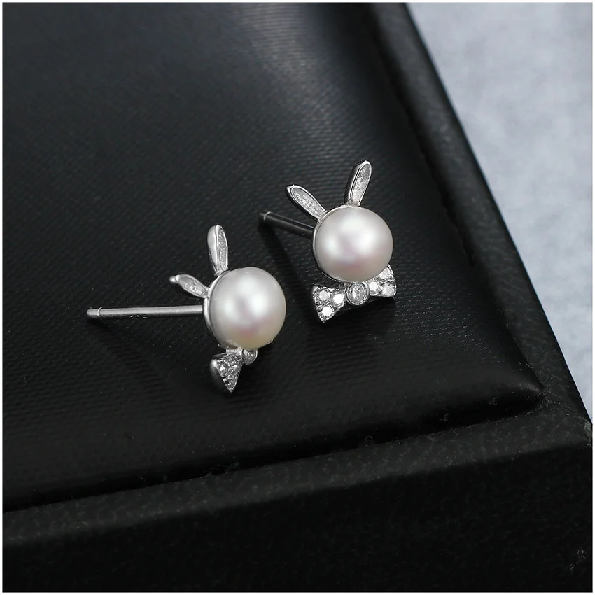 2020 Fashion 925 Sterling Silver With Pearl Cute Rabbit Stud Earrings Exquisite Animal Jewelry For Women