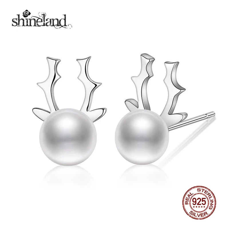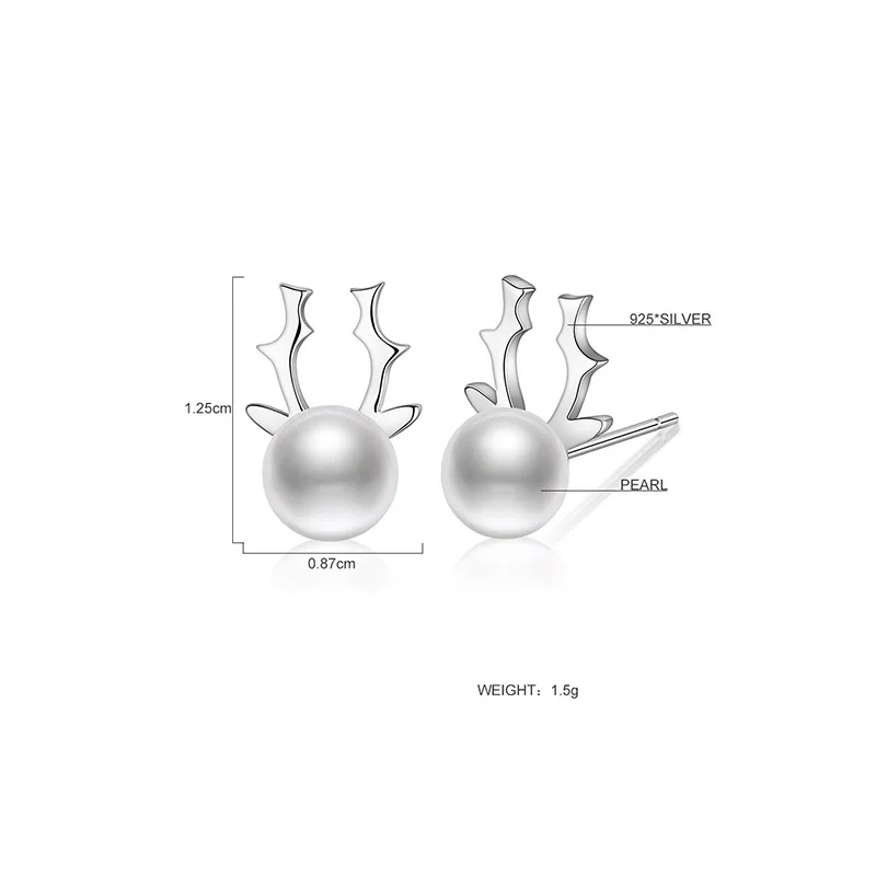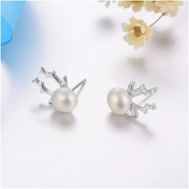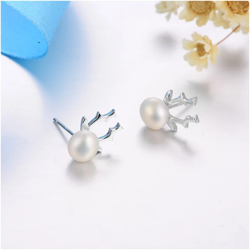 2020 Fashion Buckhorns Antlers Stud Earrings Cute Design Pearls 925 Sterling Silver Fine Earrings for Women