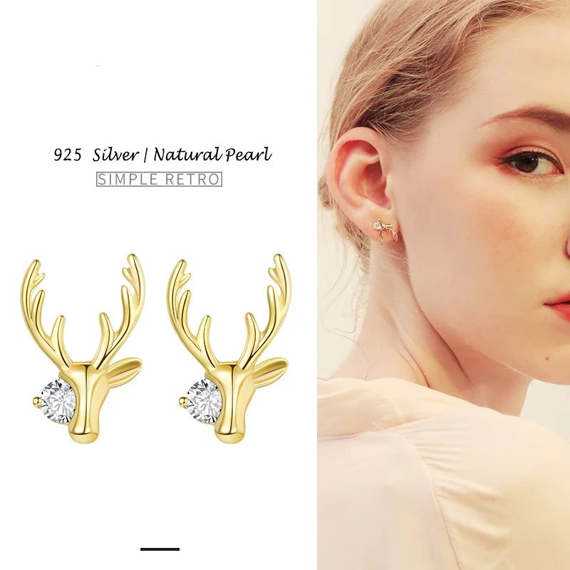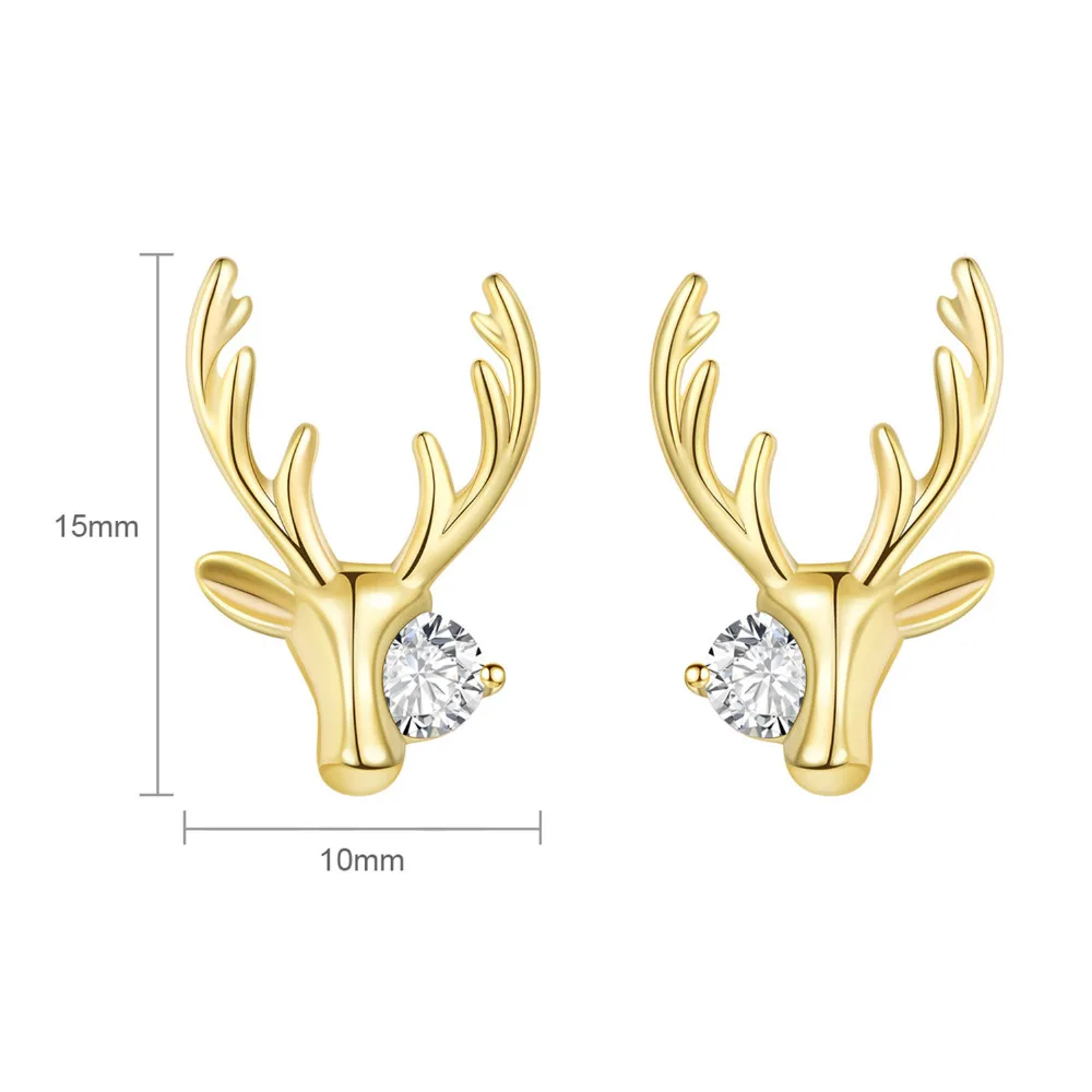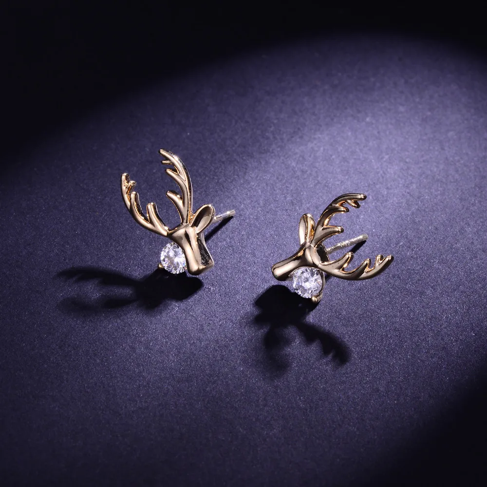 925 Sterling Silver CZ Stud Earrings For Women Jewelry Simple Cubic Zircon Ear Piercing Post Earrings Cute Deer