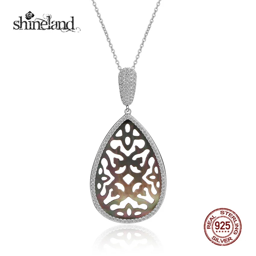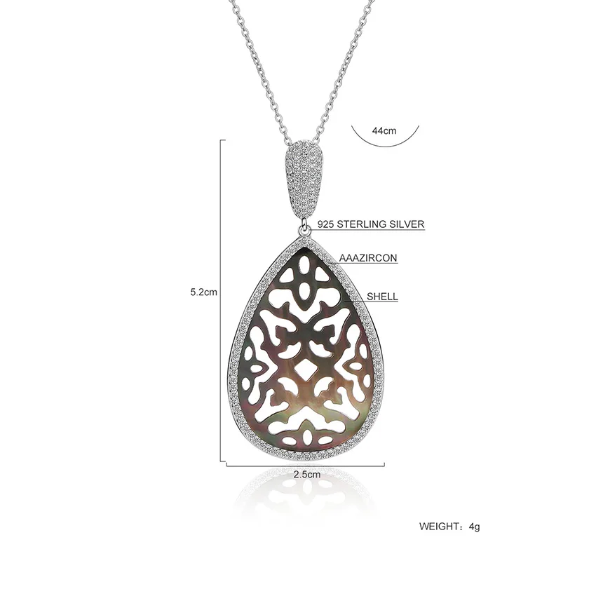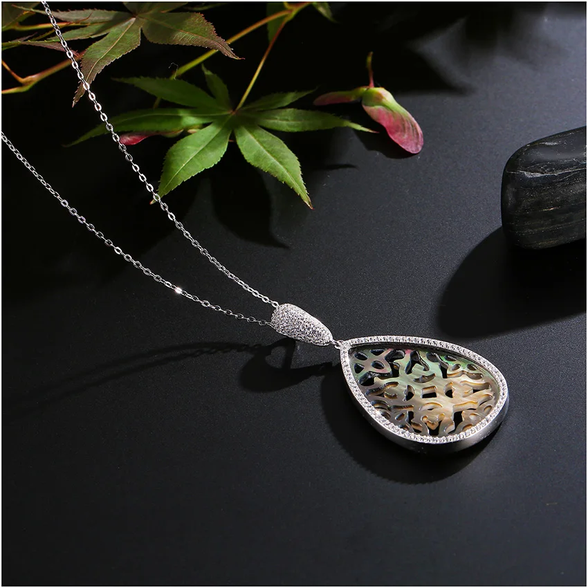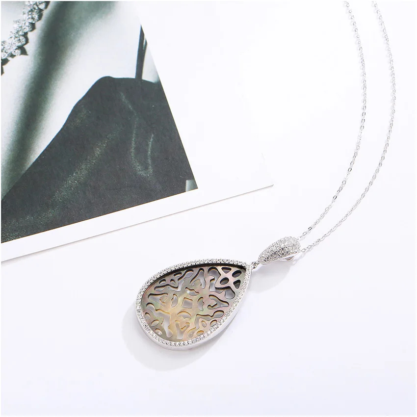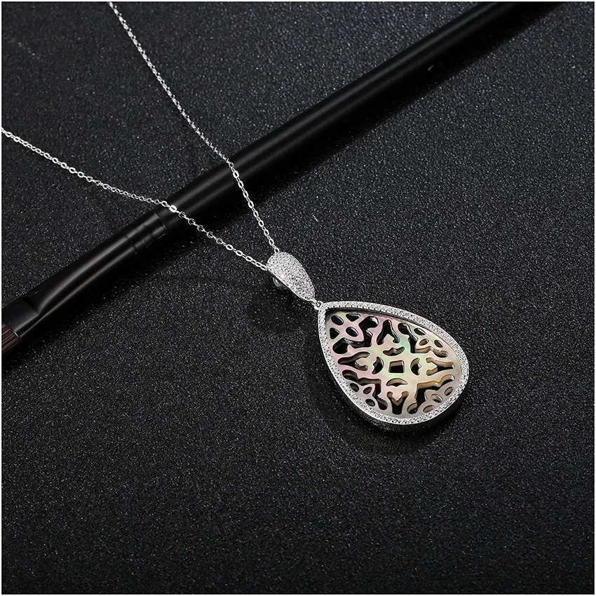 Fashion Colorful Water Drop Big Pear Hollow Flower Pendant Fine Necklace for Women 925 Sterling Silver Jewelry Colar
