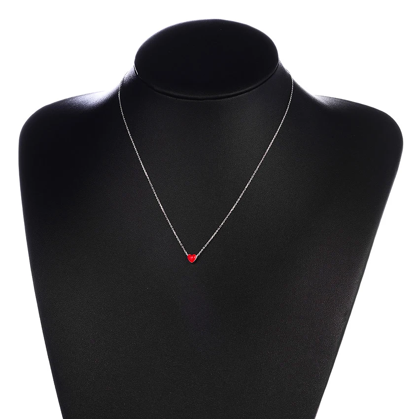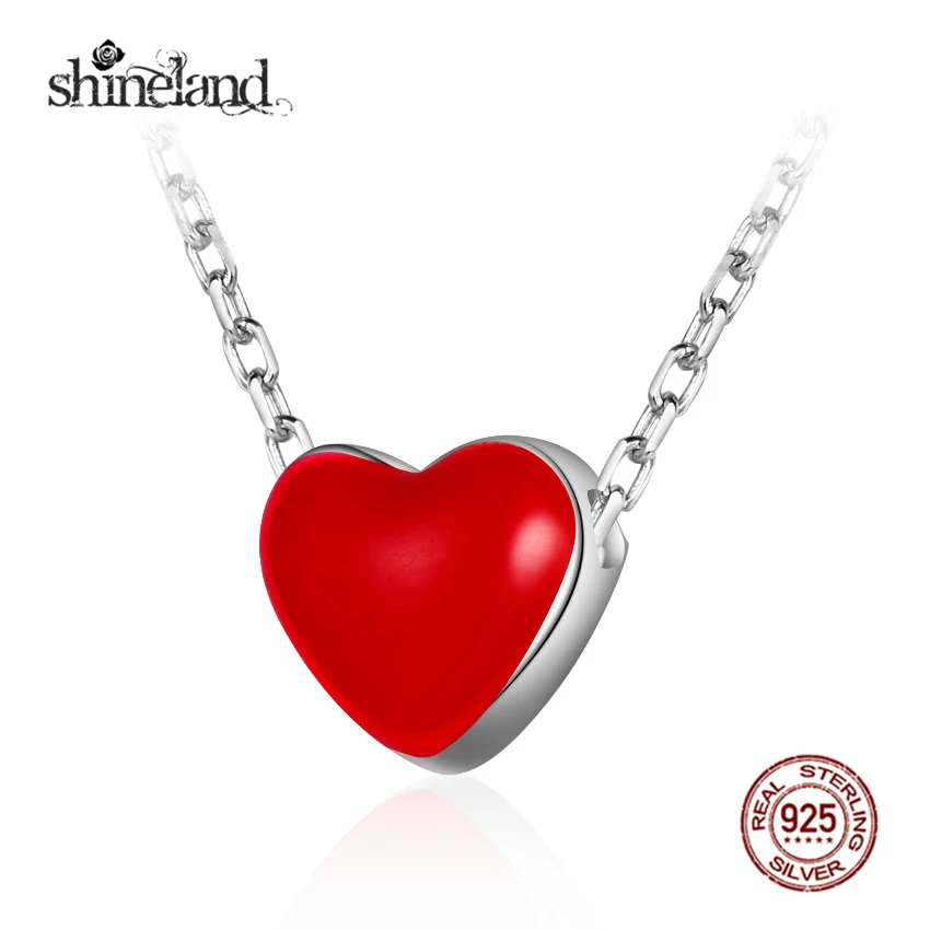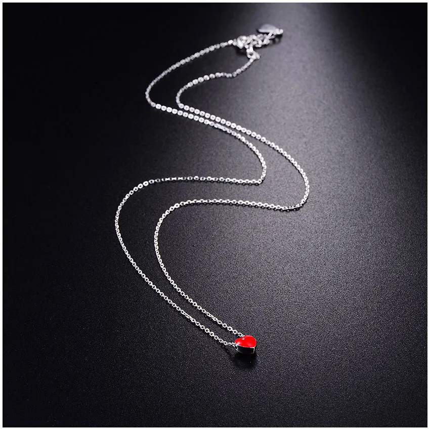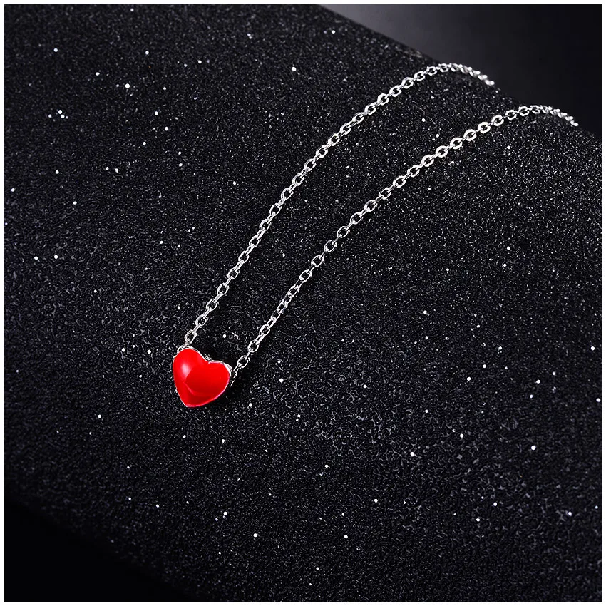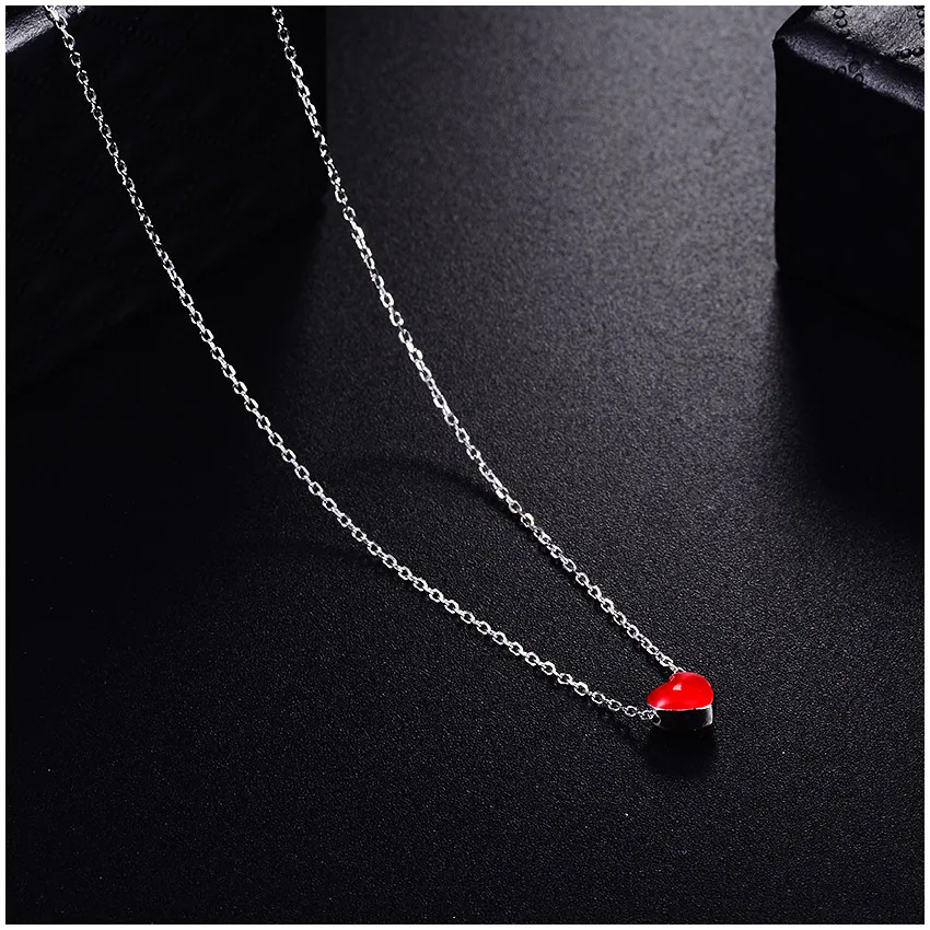 New Tiny Red Heart Statement Necklace for Women 925 Sterling Silver Necklaces & Pendants Cute Choker Necklace Jewelry