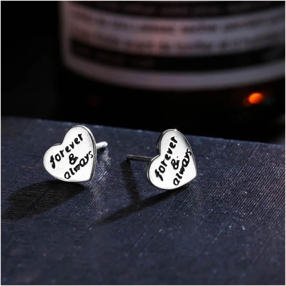 Romantic 925 Sterling Silver Forever&Always Love Heart Stud Earrings For Women Girlfriend Fashion Valentine's D Gift