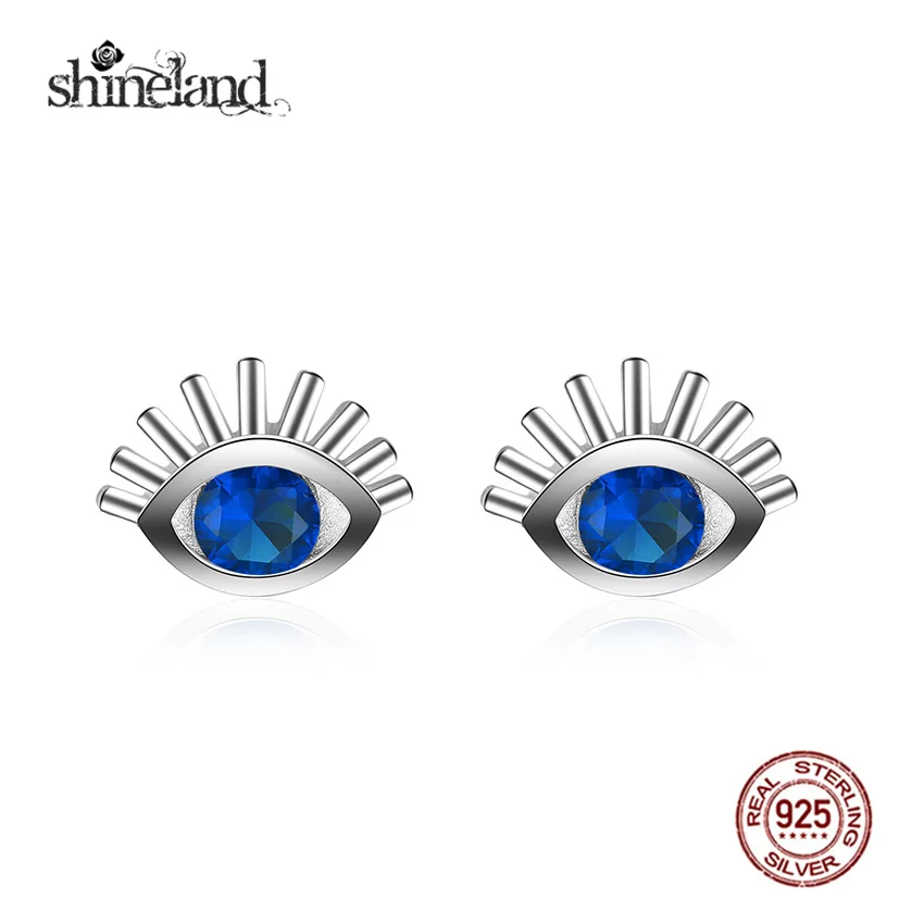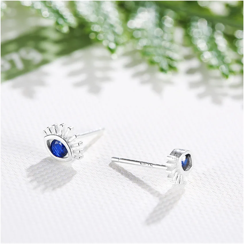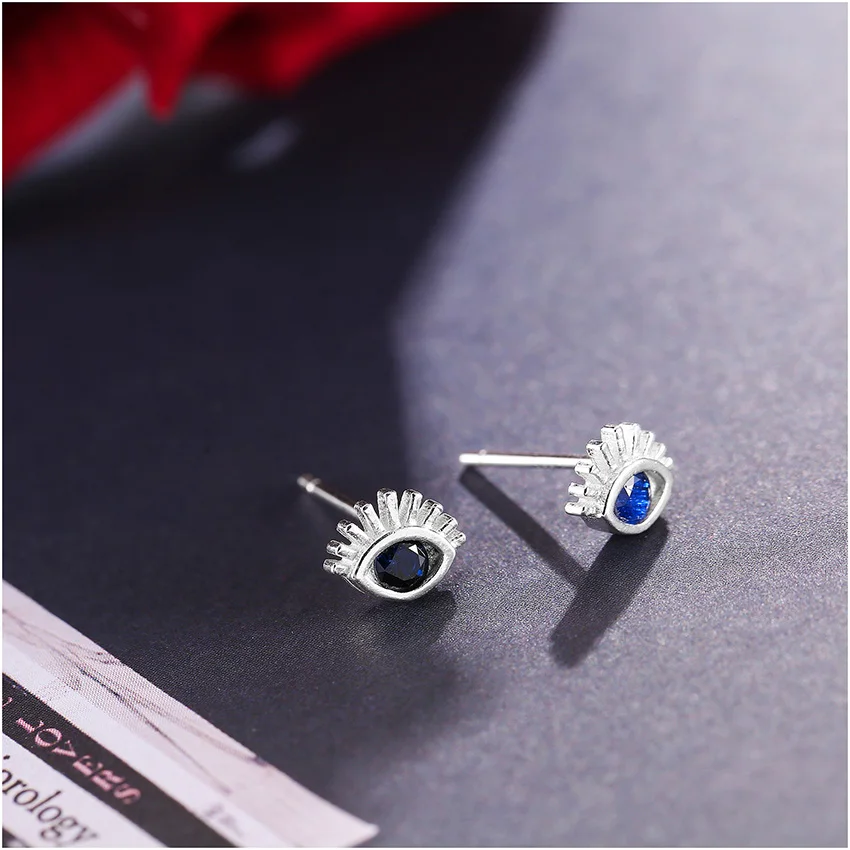 Trendy Big Eyes With Blue Cubic Zirconia Stud Earrings Statement 925 Sterling Silver Fine Jewelry For Women brincos