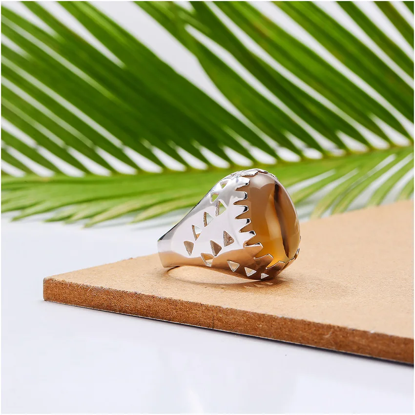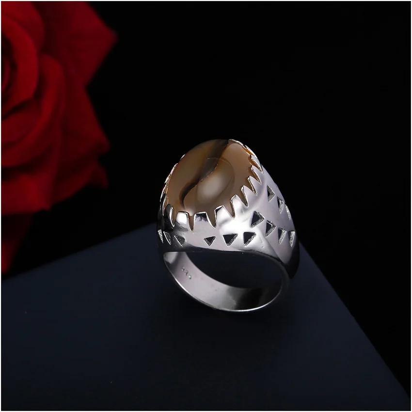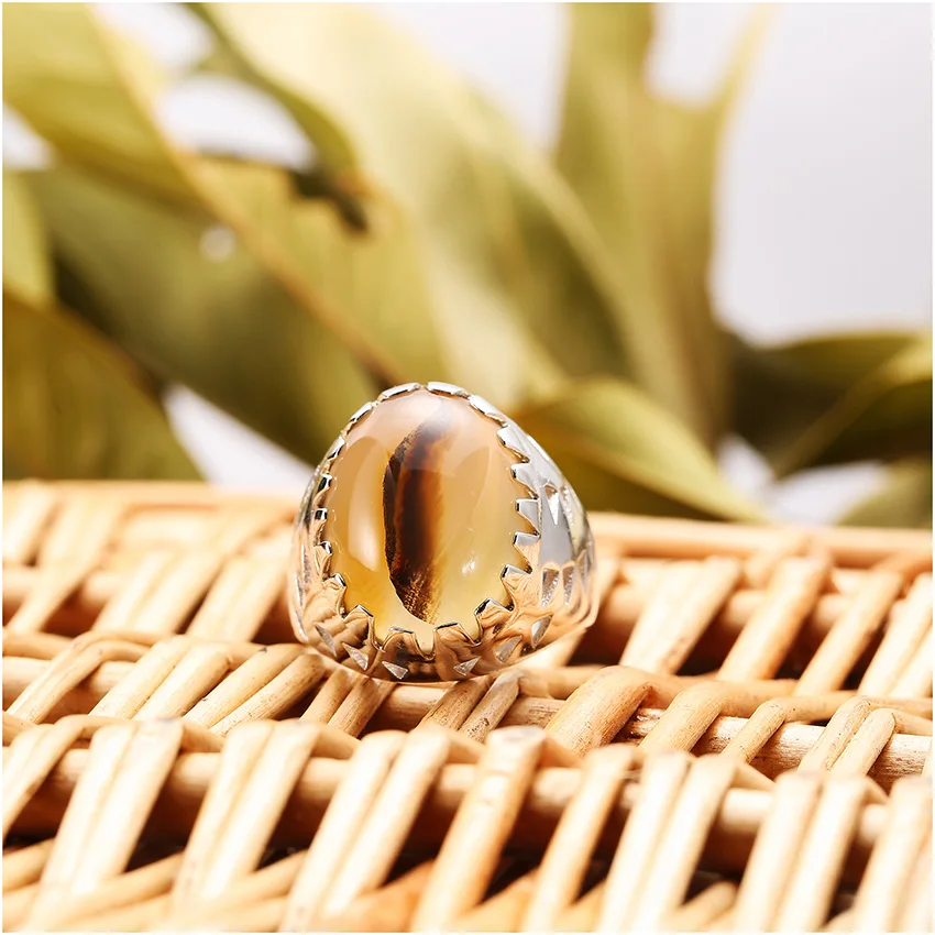 Vintage Brown Cat Eye Finger Rings Fashion Ethnic Charming Ancient silver Rings for Men Women Fine Jewelry Wholesale