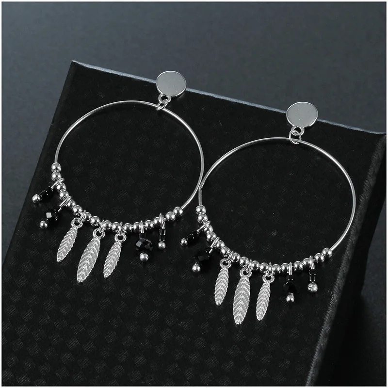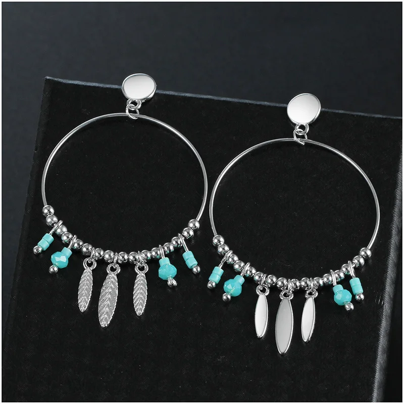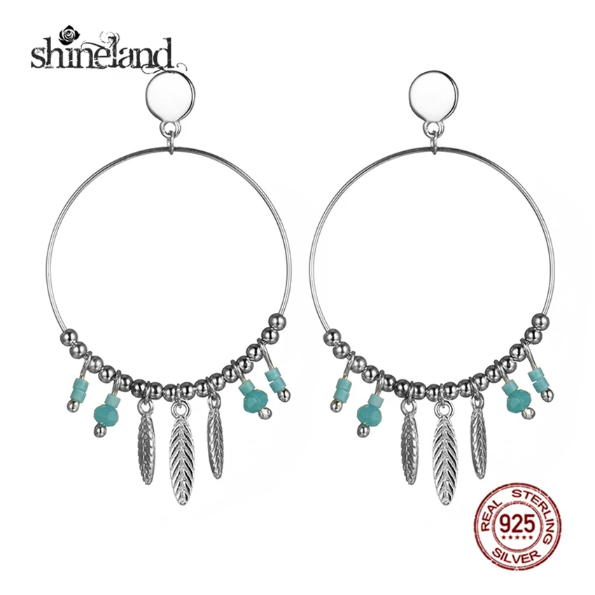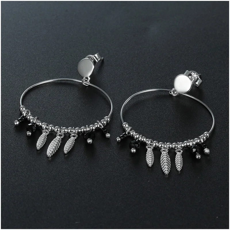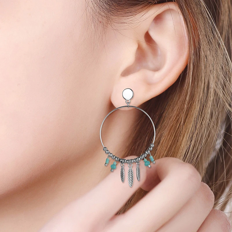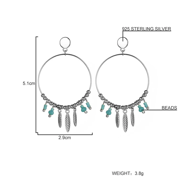 Vintage Hollow Round Circle Drop Earring Leaf Beads Tassel Dangle Earring for Women 925 Sterling-Silver-Jewelry Bijoux