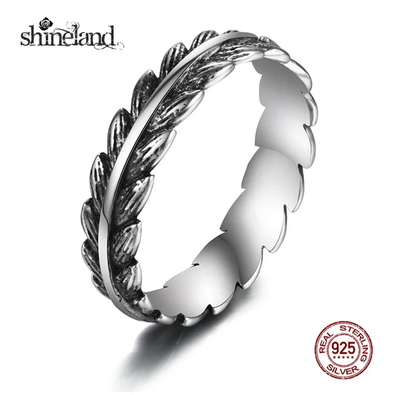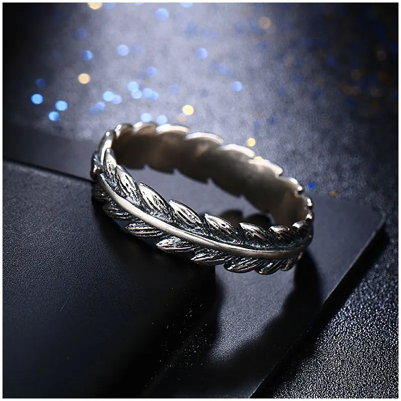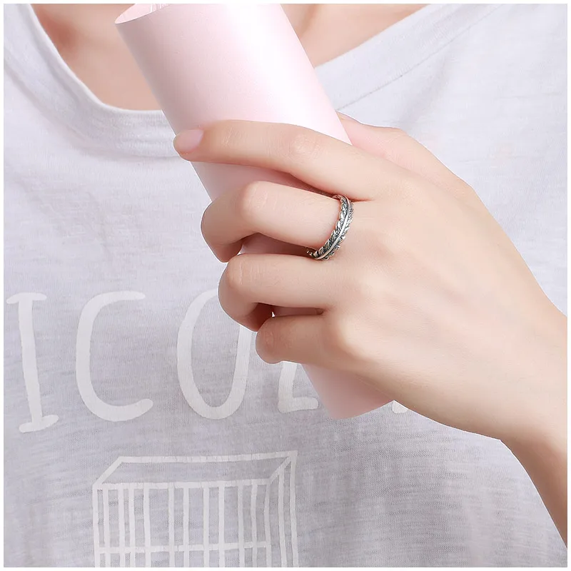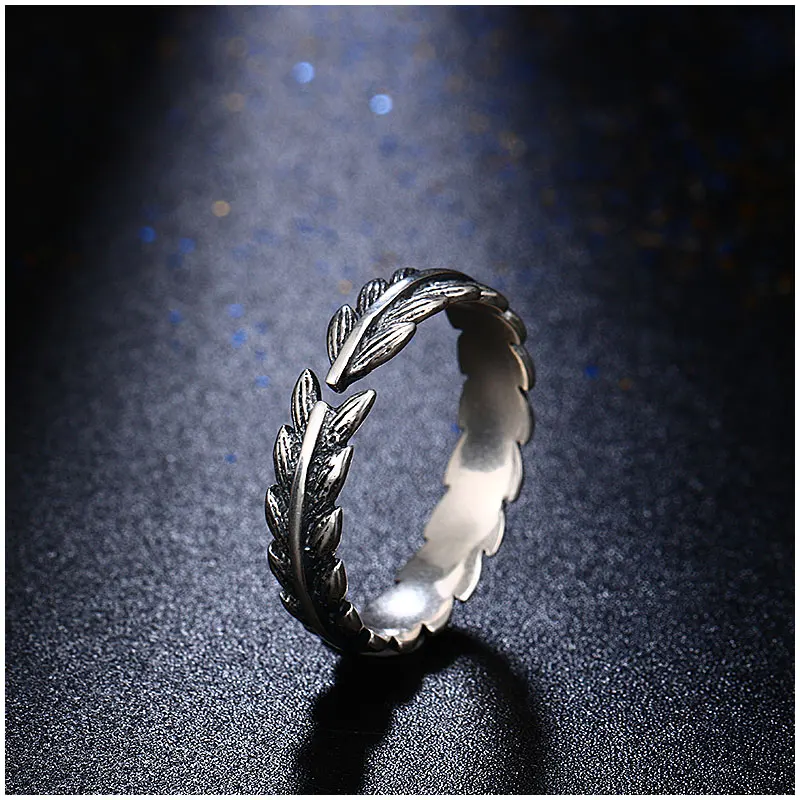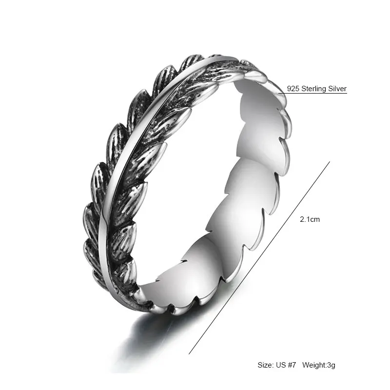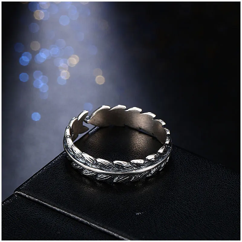 Vintage Punk 925 Sterling Silver Wicker Adjustable Ring For Women Men Feather Retro Thai Silver Open Ring Fine Jewelry