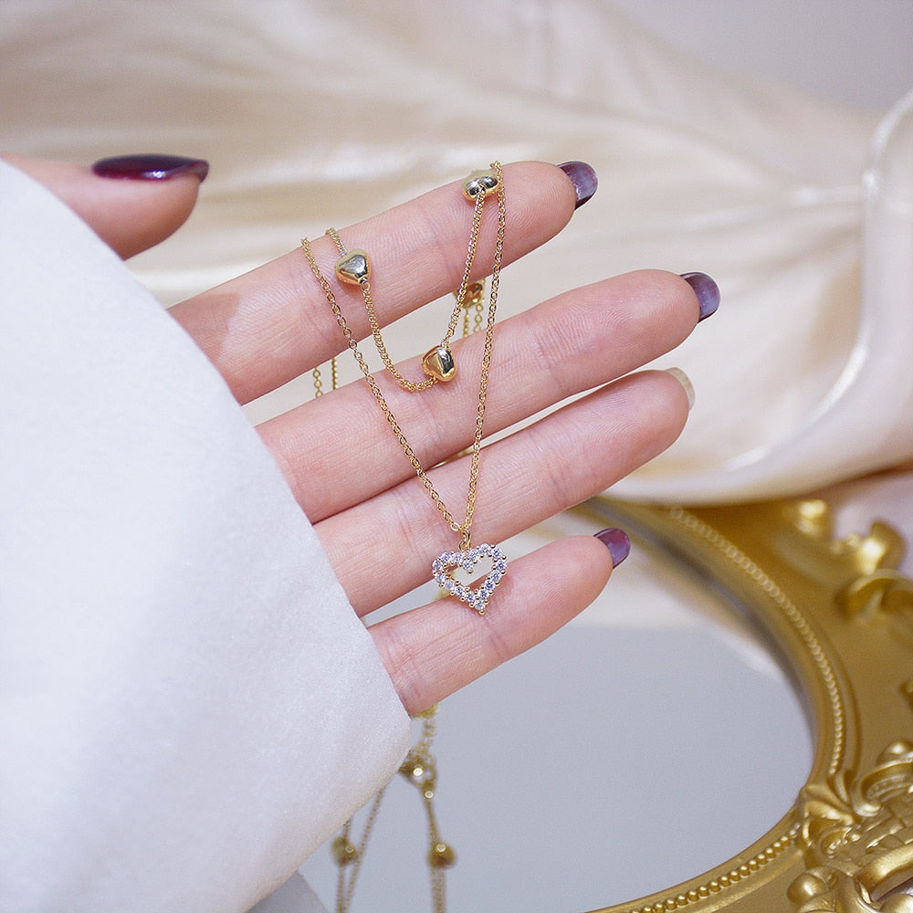 shiny heart pendant AAA zircon 14k real gold plating necklace sexy female prom clavicle double necklace