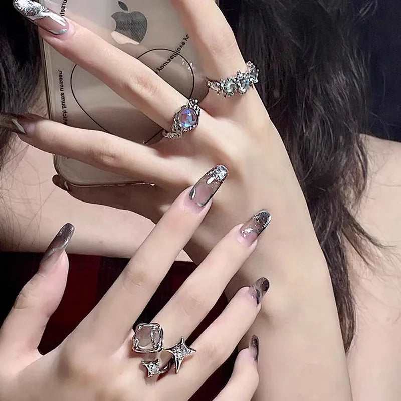 Shiny Rhinestone Cross Star Ring for Women Couples Open Crystal Vintage Finger Ring Y2K Aesthetic Trendy Egirl Jewelry Gifts