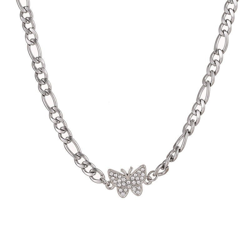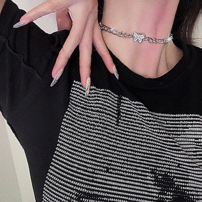 Shiny Zircon Butterfly Pendant Choker Light Aesthetic Niche Clavicle Silver-plated Necklace Jewelry Women