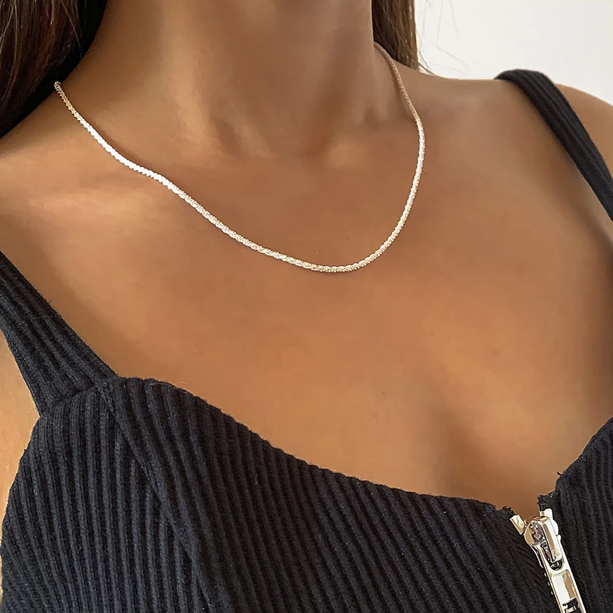 SHIXIN Copper Thin Smooth Chain Thin Chain Choker Necklace for Women Shiny Gothic Necklace Chain Fashion Femme 2021 Jewelry Gift