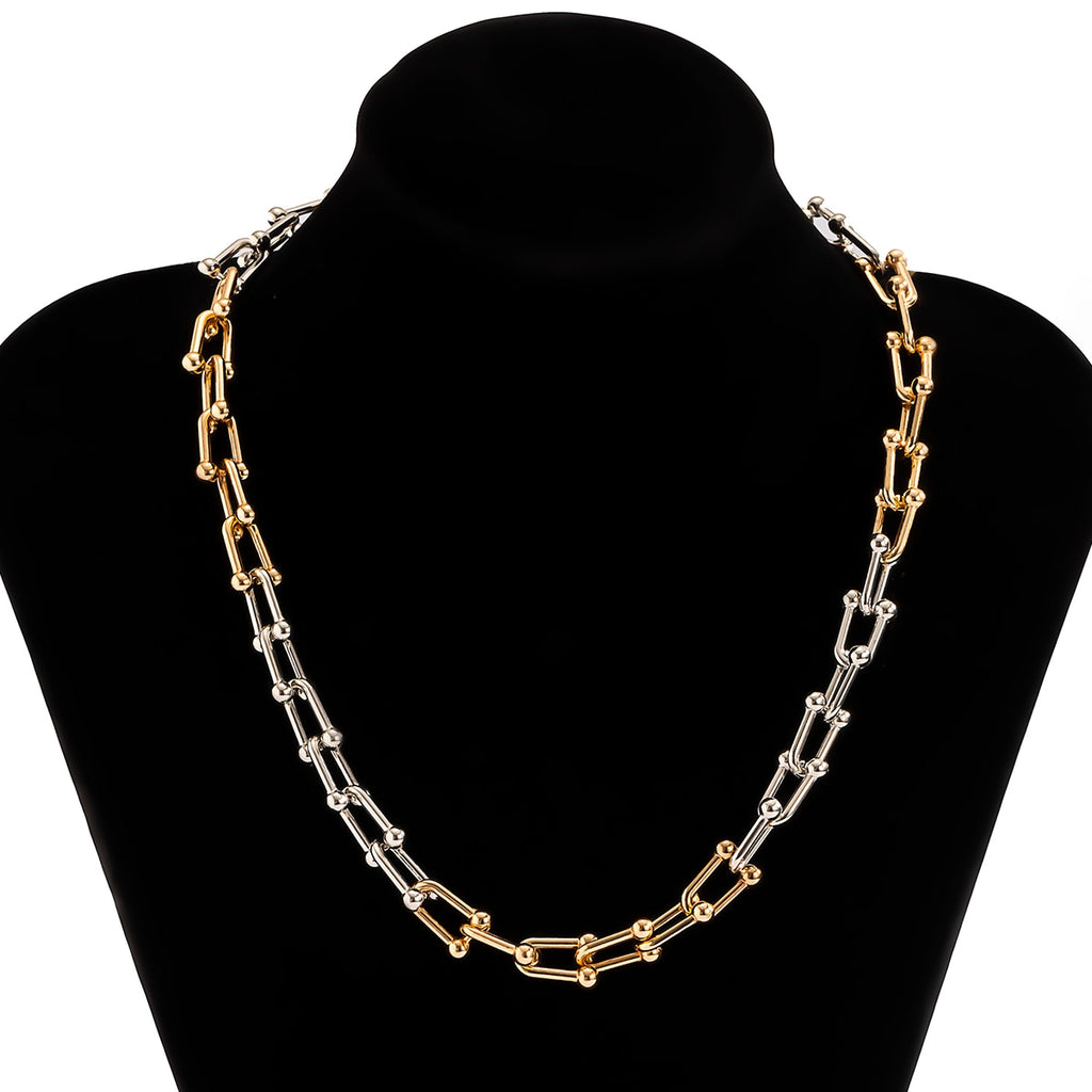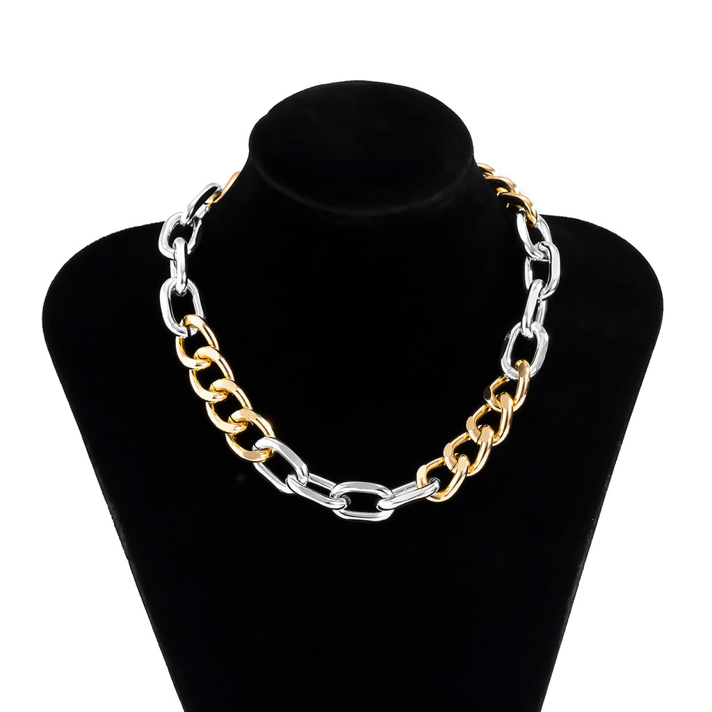 Model Number : Asymmetry Gold/Silver Stitching Chain Necklace for Women