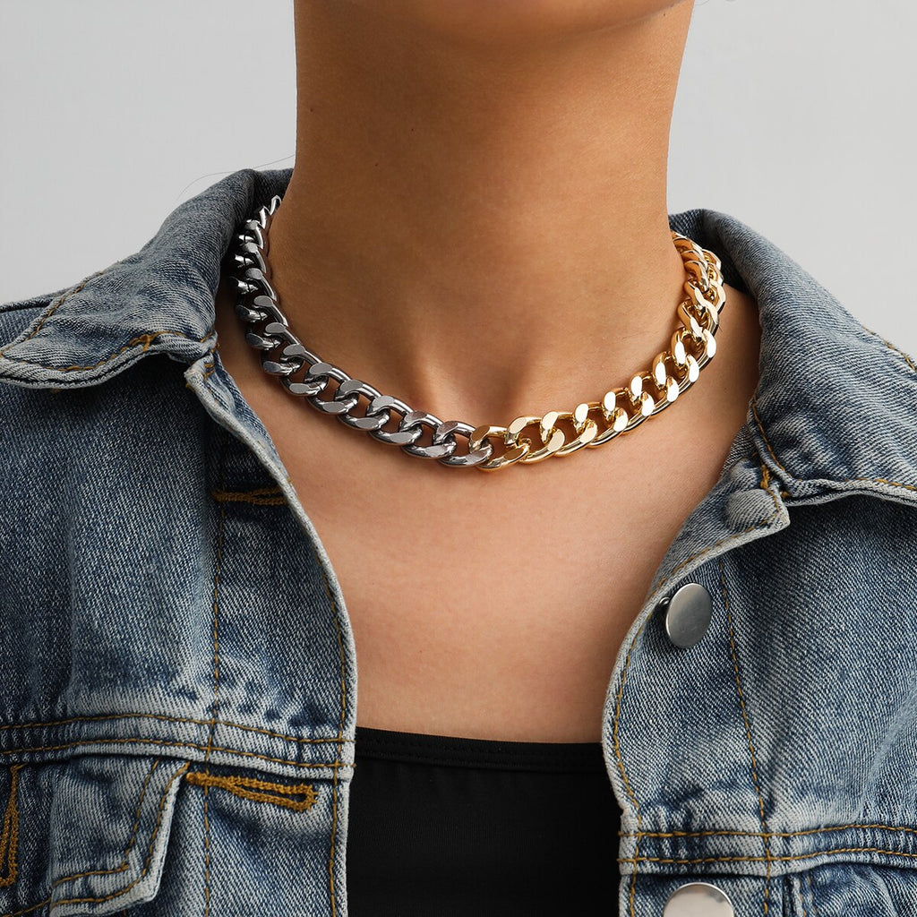 Color : Gold Color Silver Color Stitching Chain Necklace Women