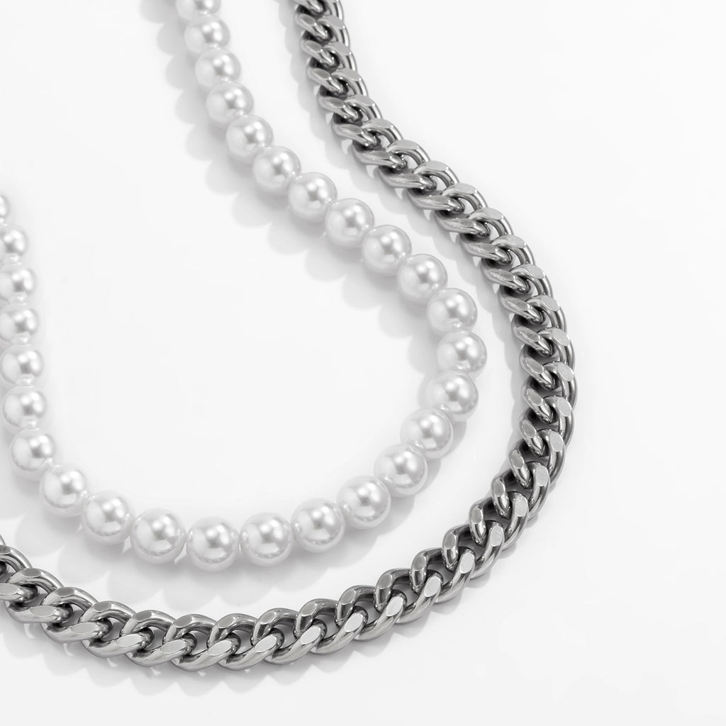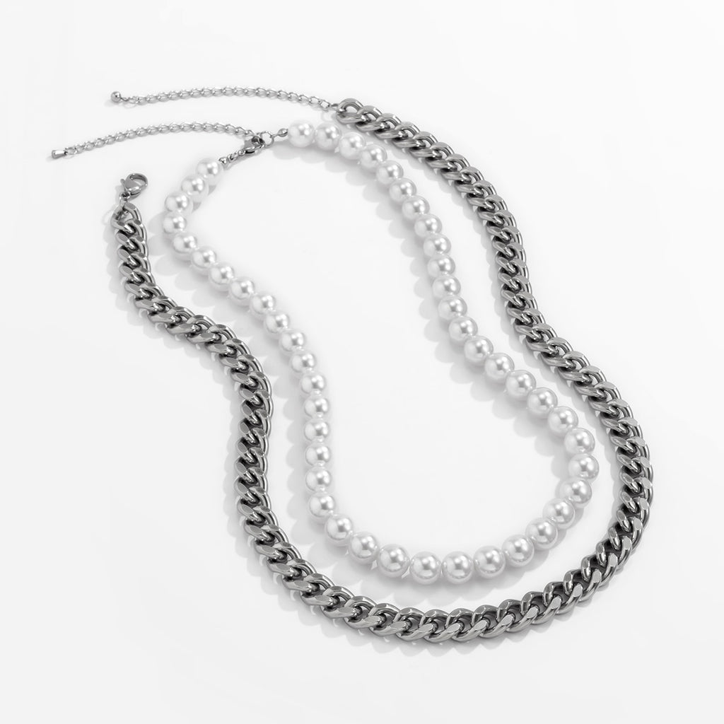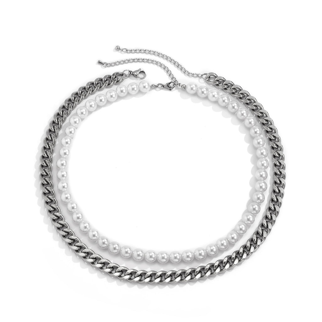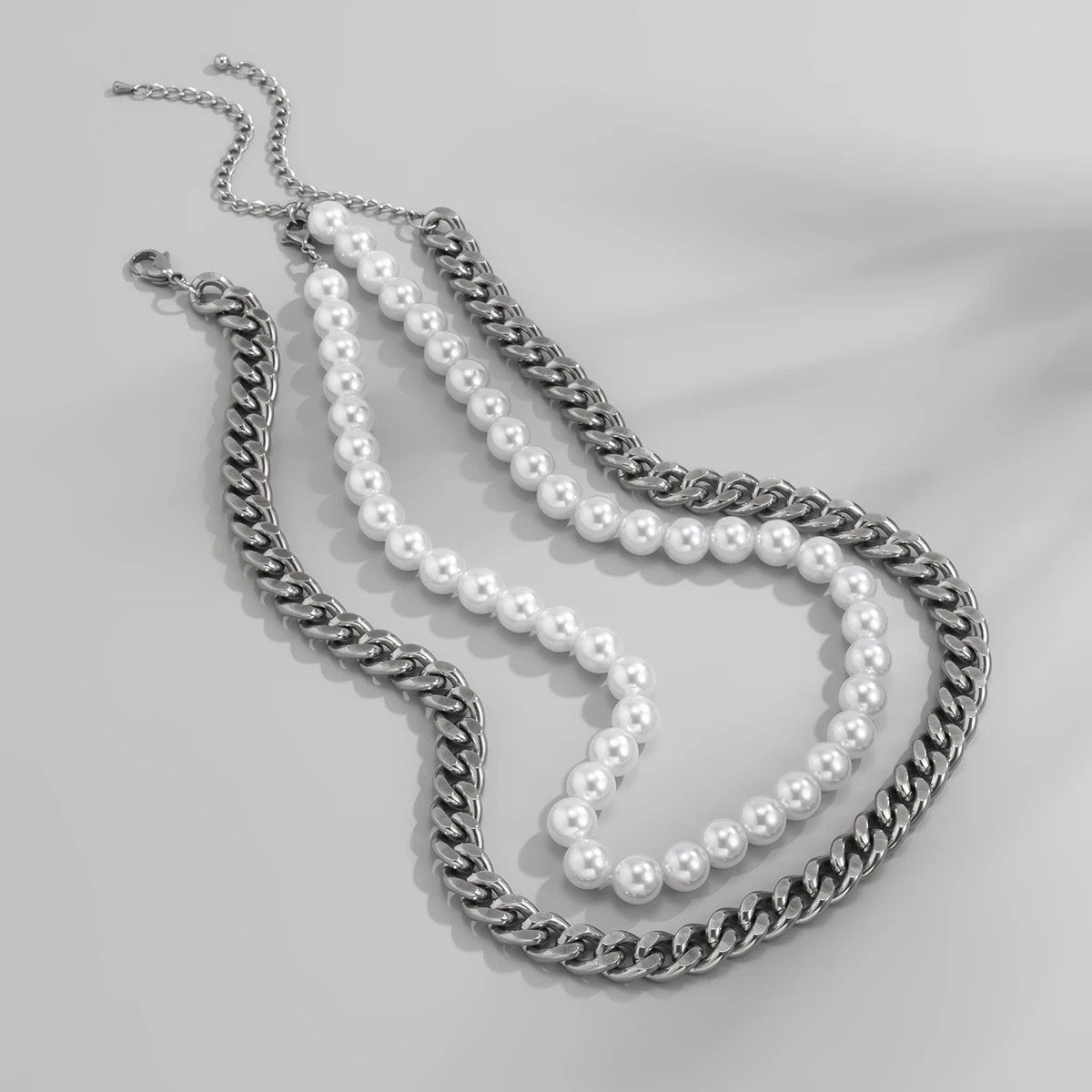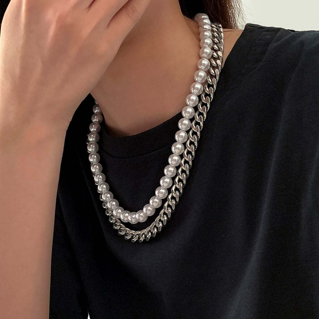 SHIXIN Punk Stainless Steel Layered Pearl Necklaces for Women Men Thick Necklaces Chains on the Neck Jewelry Collar 2021