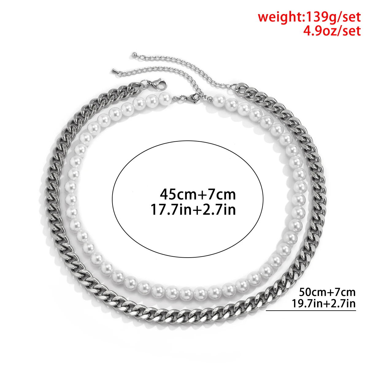 Model Number : Layered Pearl Beads Thick Chain Necklace Set Women