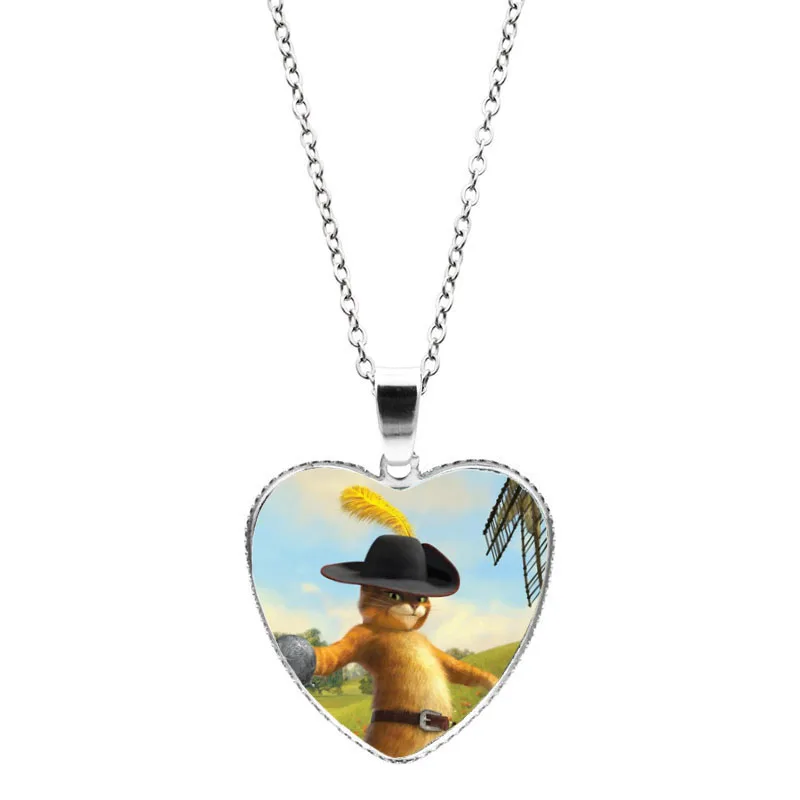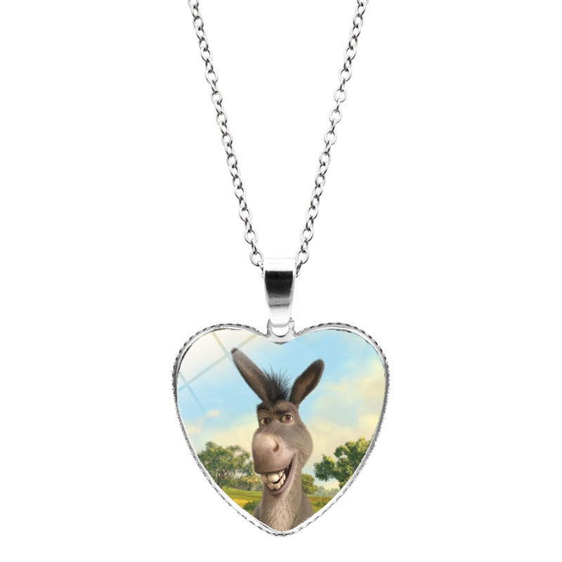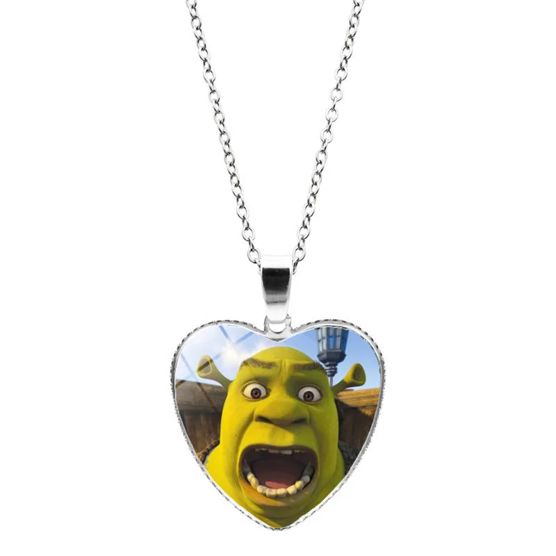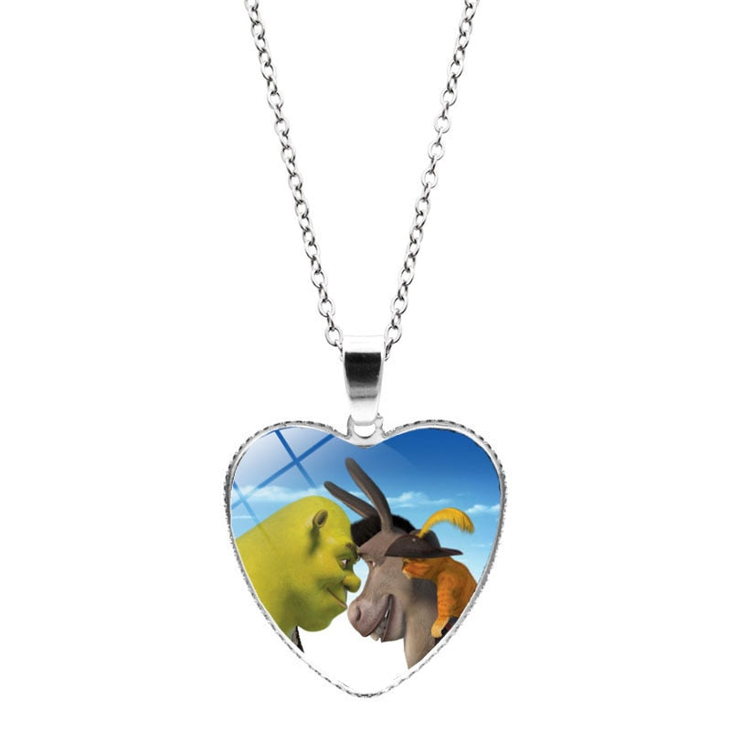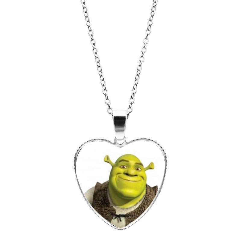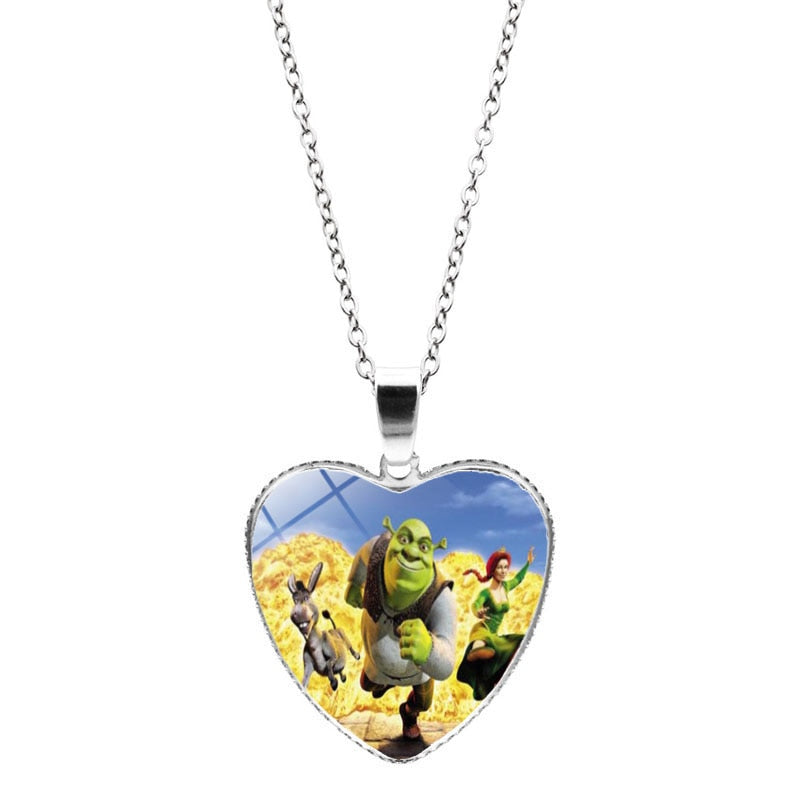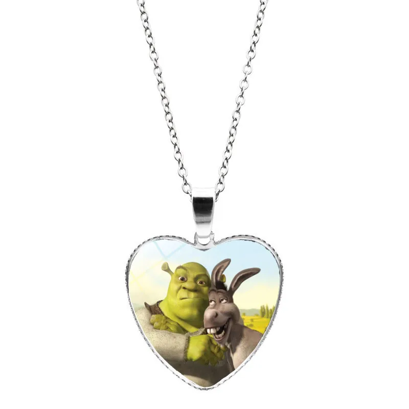 Shrek Heart Pendant Necklace Glass Cabochon Jewelry Gifts Couple Heart Choker Necklace for Women Friendship Necklaces