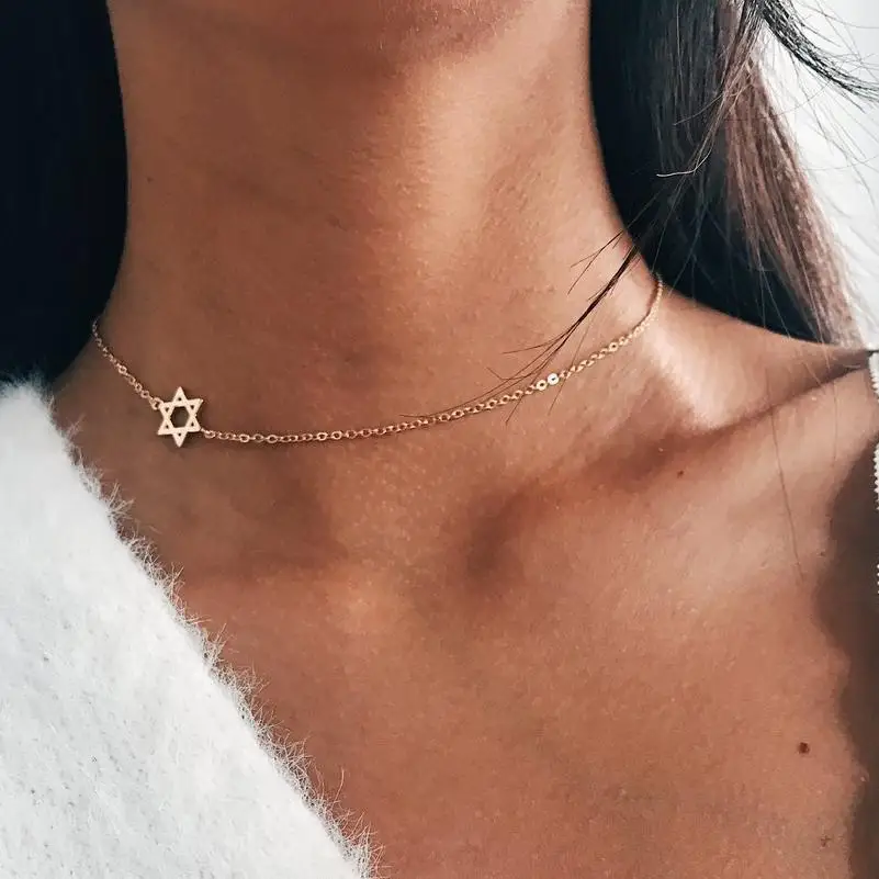 Sideways Star Of David Necklace For Women Tiny Star Simple Minimalist Charm Coker Necklace Dainty Bat Mitzvah Jewelry Gift