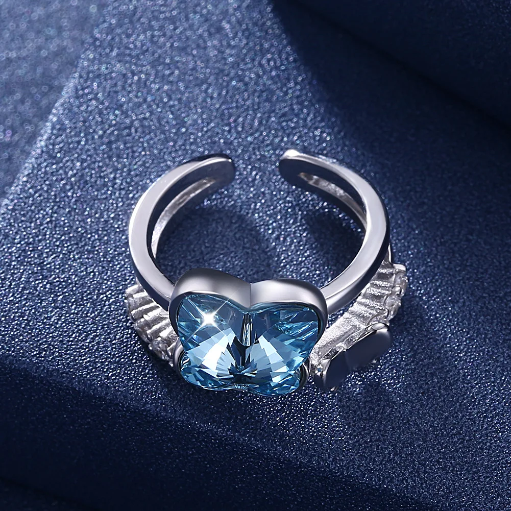 Silver 925 Jewelry Butterfly Zircon Diamond Adjustable Opening Ring for Women Element Crystal Jewelry Light Blue Geometric style