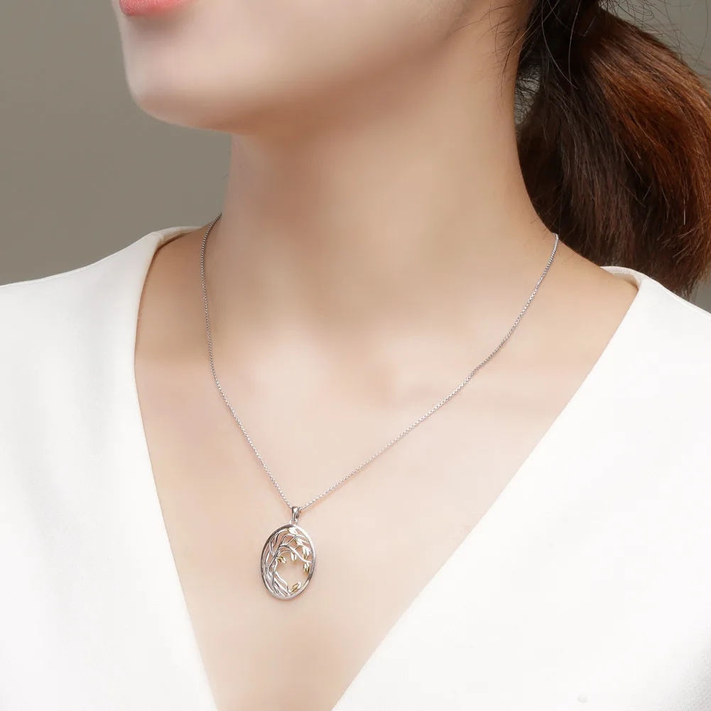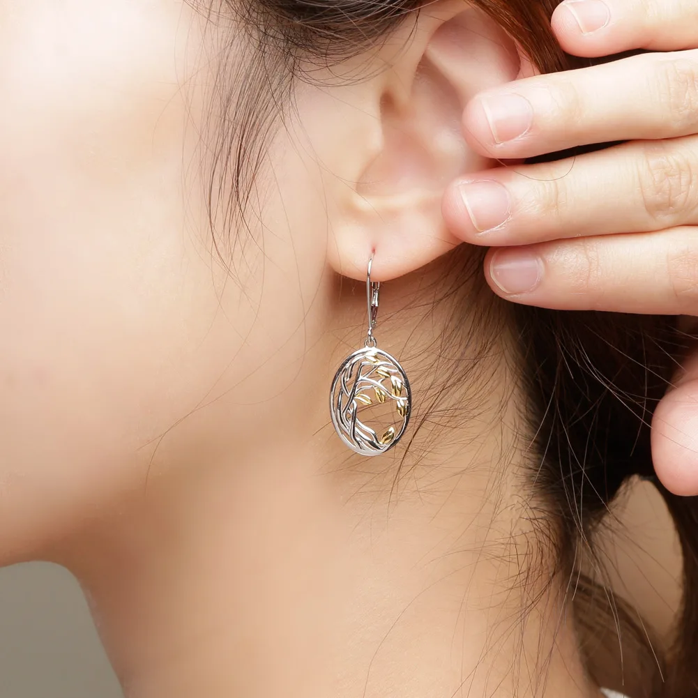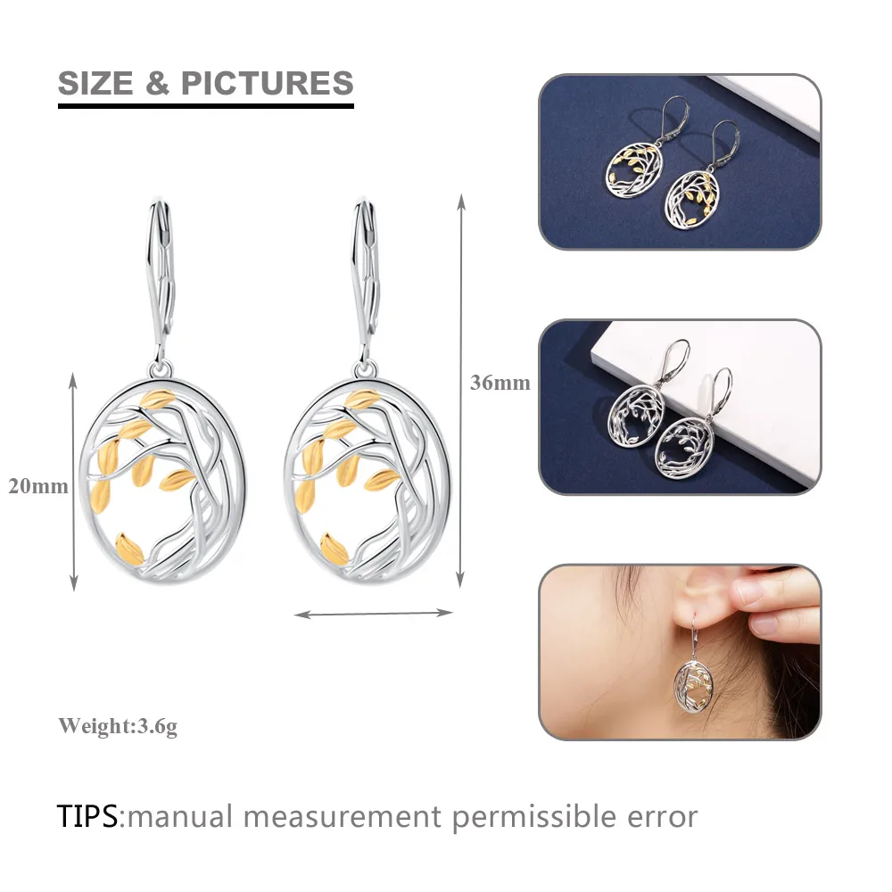 925 Sterling Silver Yellow Gold Plated Leaf Tree Pendant Necklace Drop Earrings Jewelry Sets for Woman Silver Set