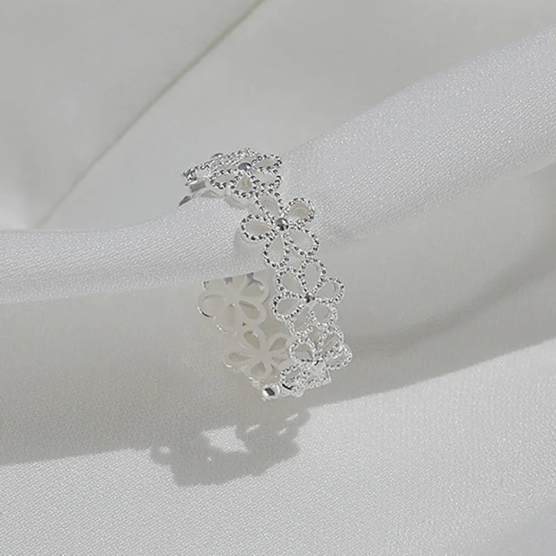 Silver Color Finger Rings for Women Couples New Creative Hollow Flower Geometric Party Jewelry Gifts Wholesale