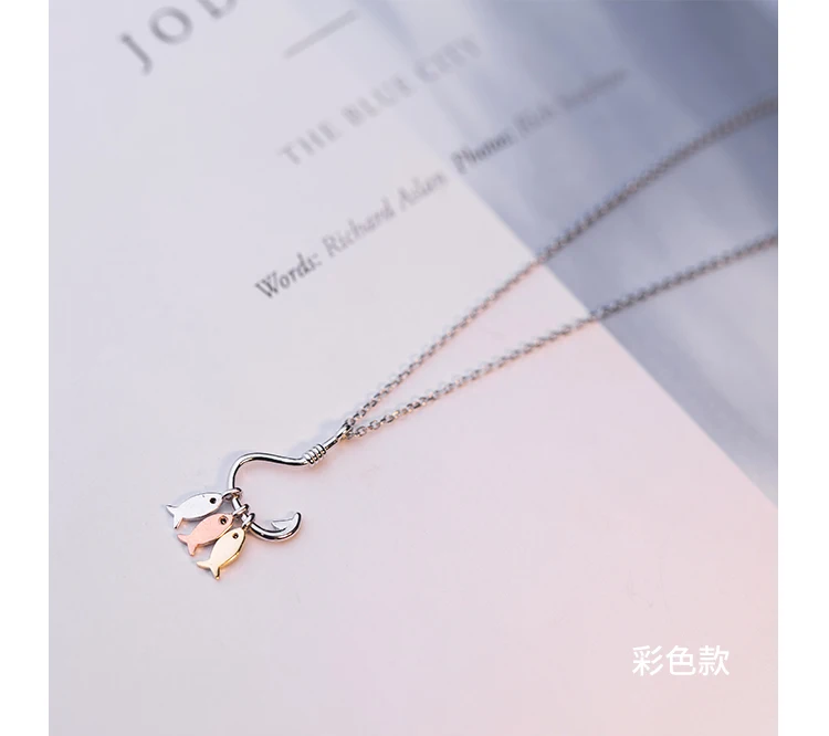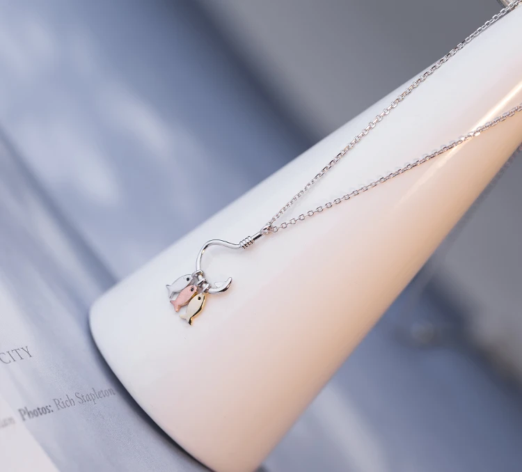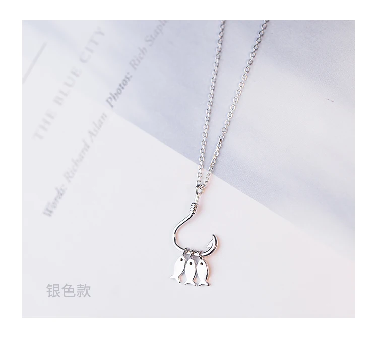 Silver Color Three Little Fish Pendant Originality Necklaces Lucky Fish Hook Necklace For Women Jewelry Girl Gift