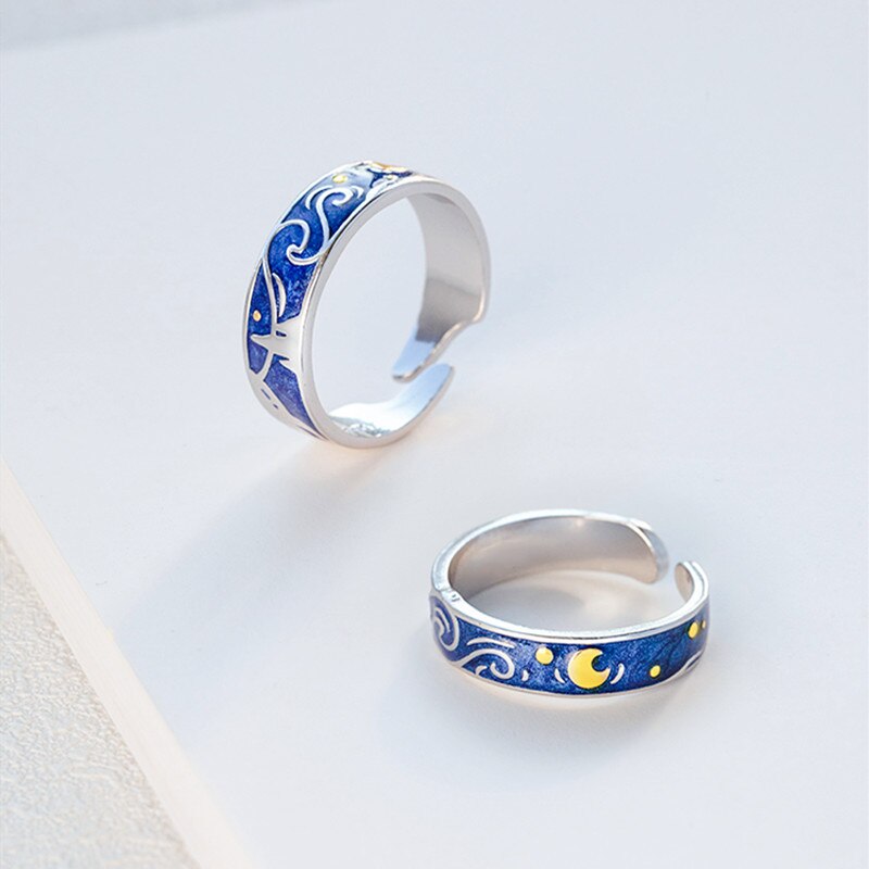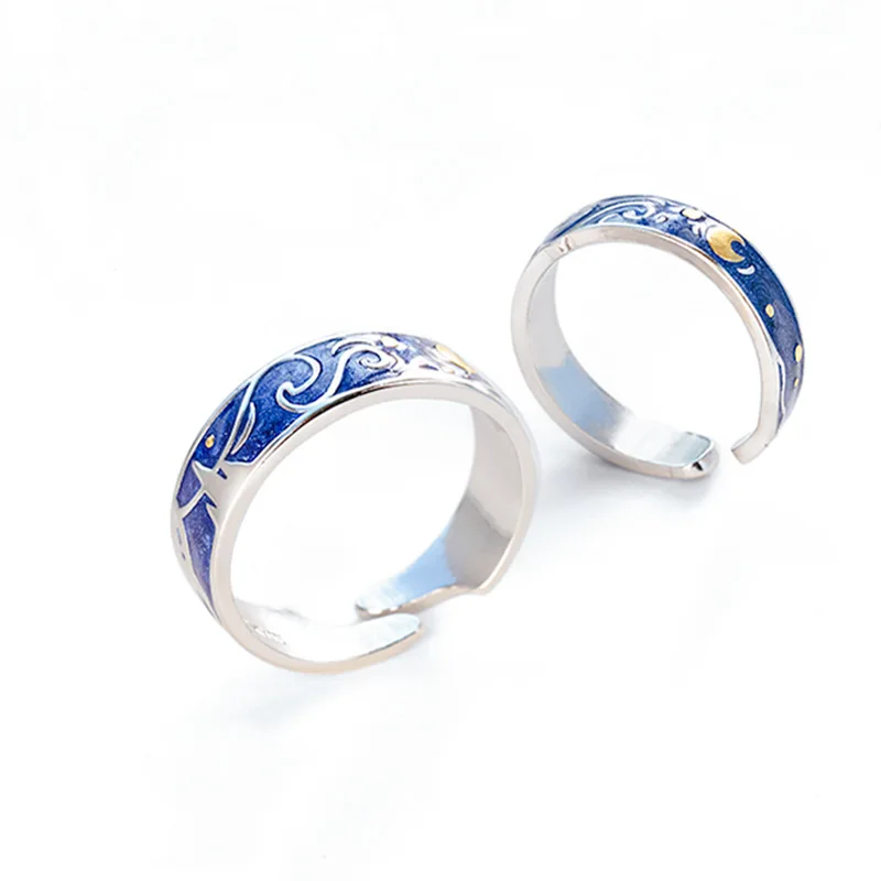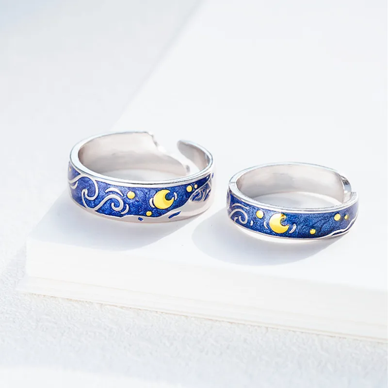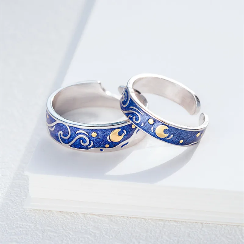 Silver Colour Starry Sky Couple Ring Woman Men Rings Designer Jewelry Aesthetic Accessories GaaBou Jewellery