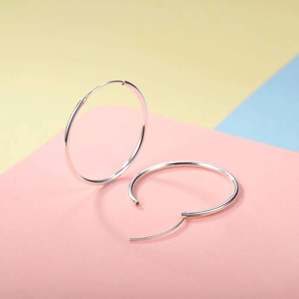 40mm*40mm Hoop Earrings For Women 100% Real 925 Sterling Silver Rose Gold/Gold Color Simple Round Brinco SCE6140B