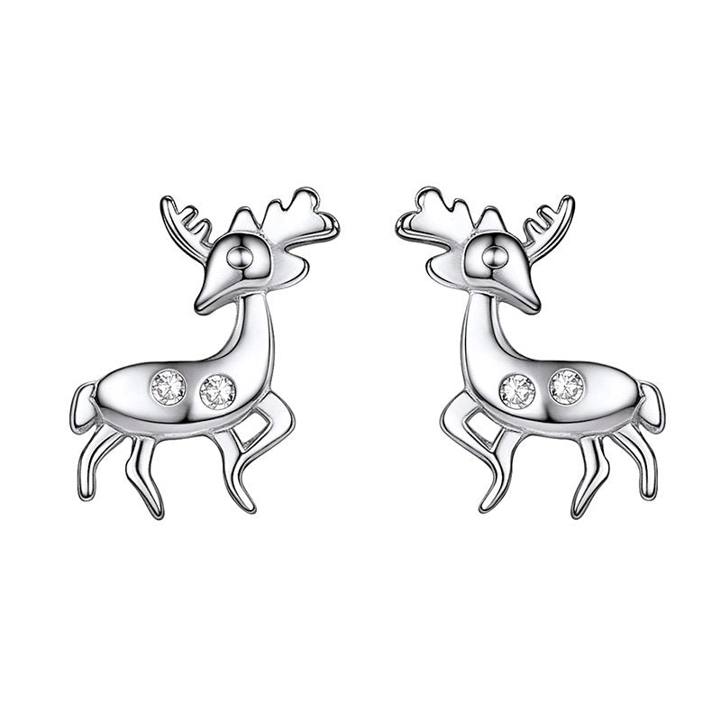 Lovely Animal Earrings 925 Sterling Silver Fine Jewelry Cat Sika Deer Elephant Fox Stud Earring For Women SCE6363B