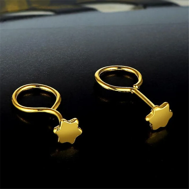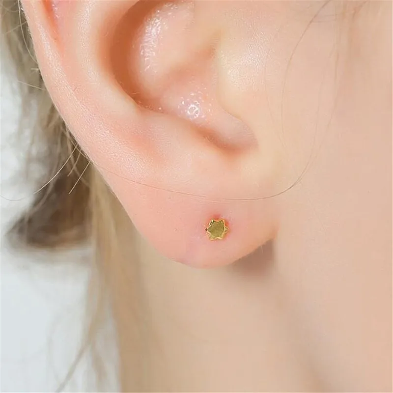 Simple 100% 18K Pure Gold Star of David Hexagram Stud Earrings For Women Girls Fashion Women Jewelry Christmas Gifts Wholesale