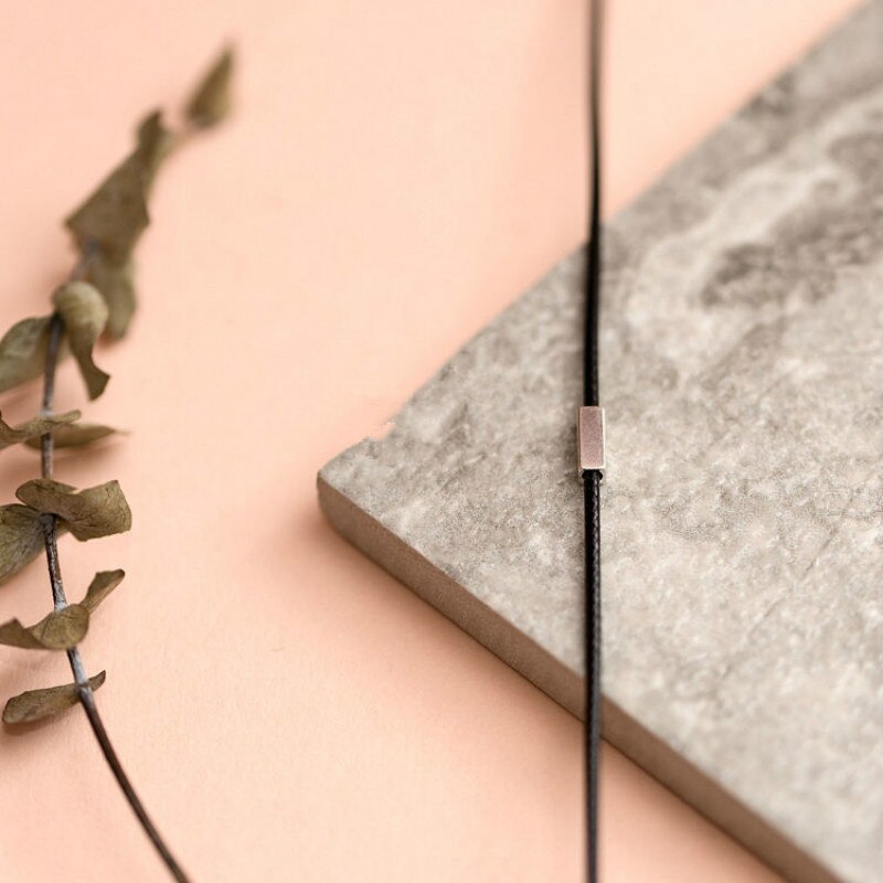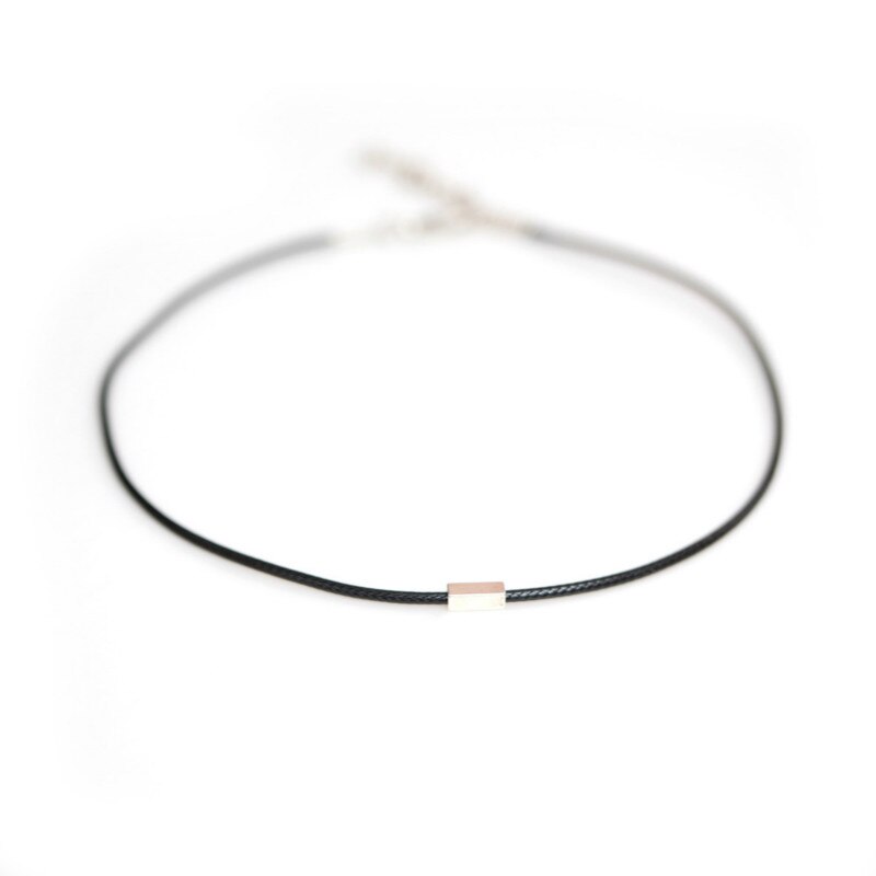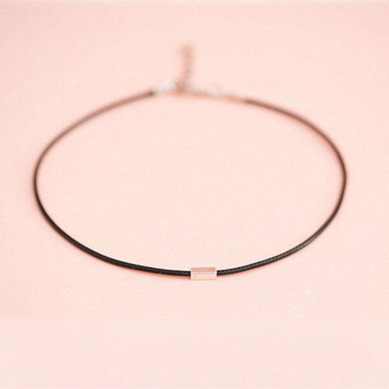 Name : Simple Black Leather Cord Choker Necklace Silver Bar Chocker