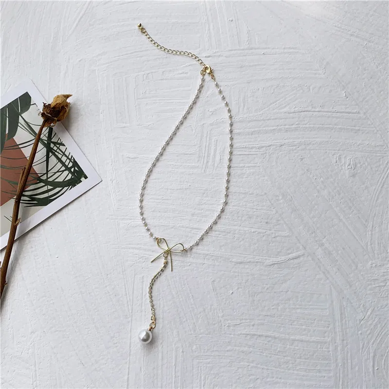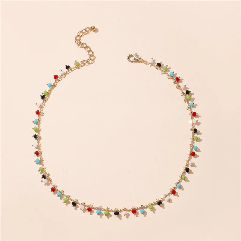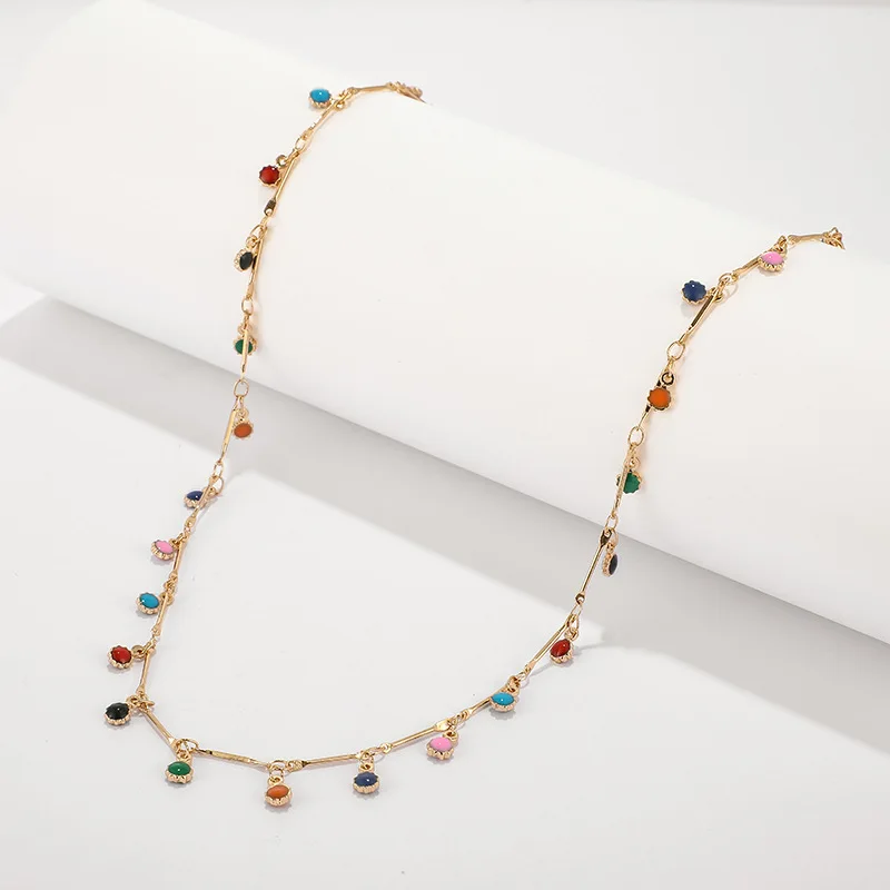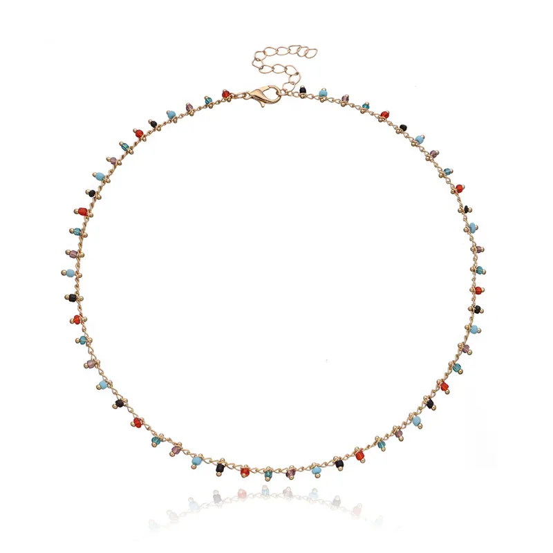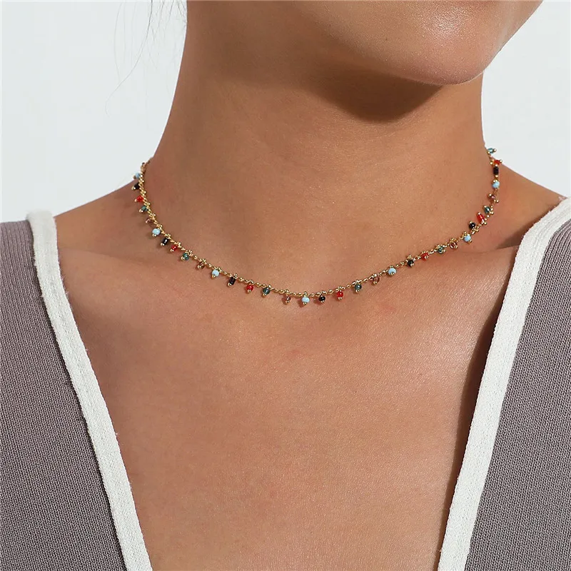 Simple Bohemia Elegant Choker Tassel Necklace for Women Colorful Drop Bead Short Chain Pearl Pendant Choker Necklaces Jewelry
