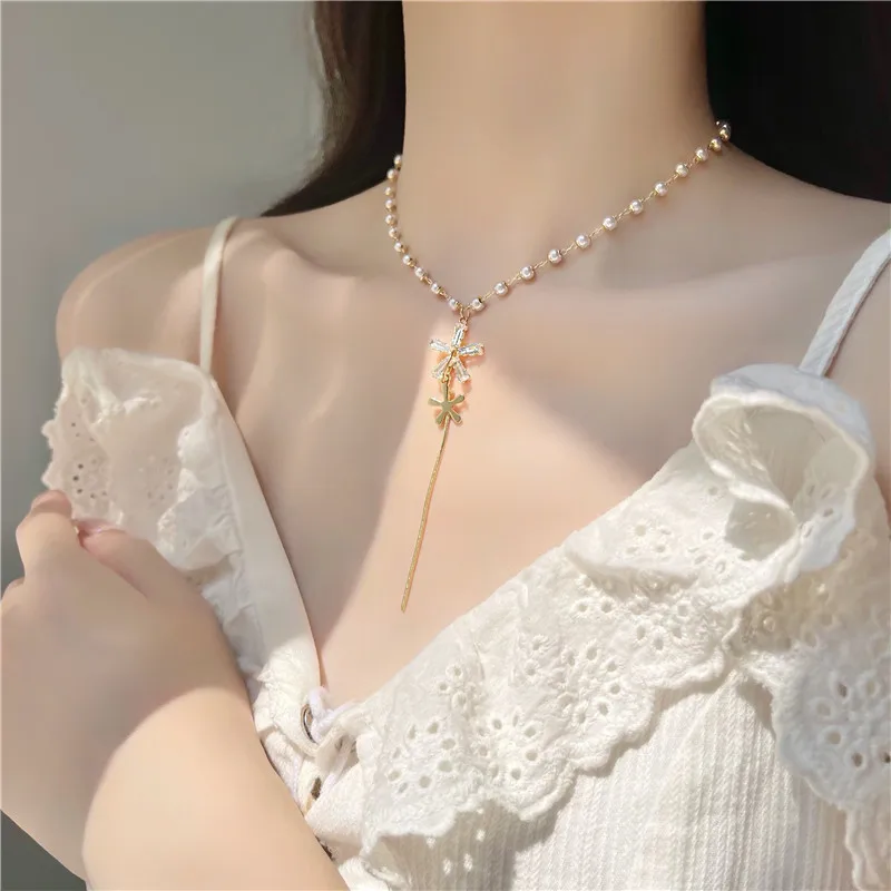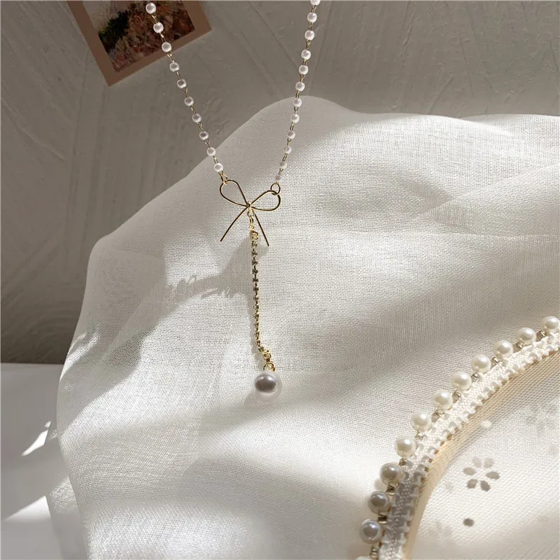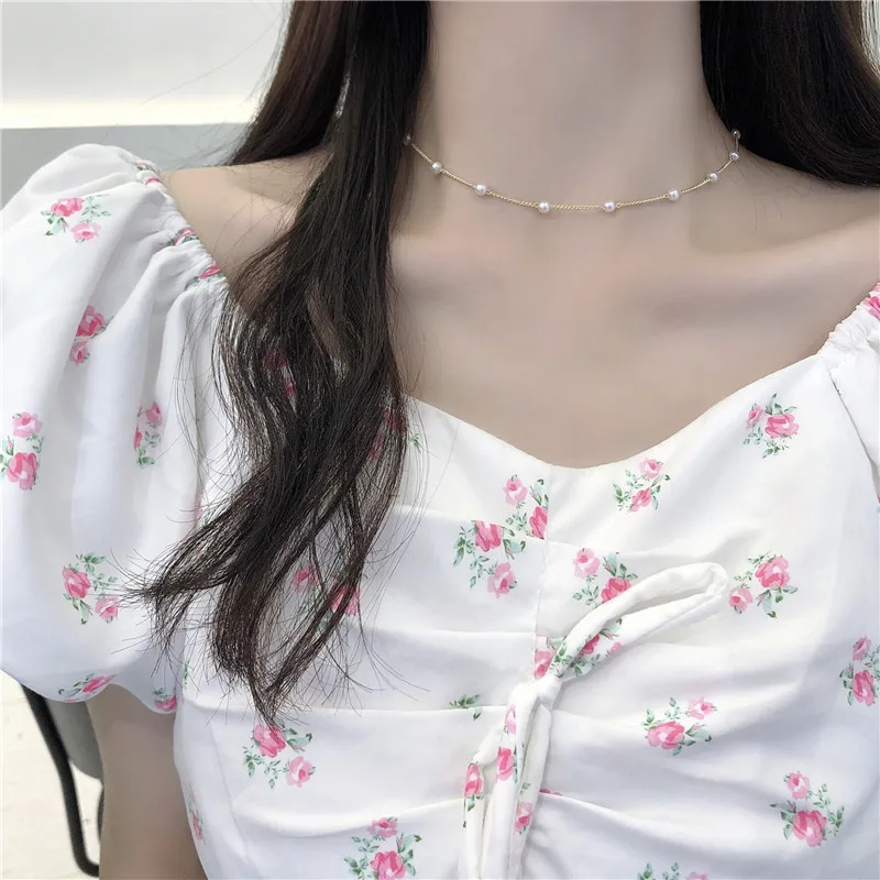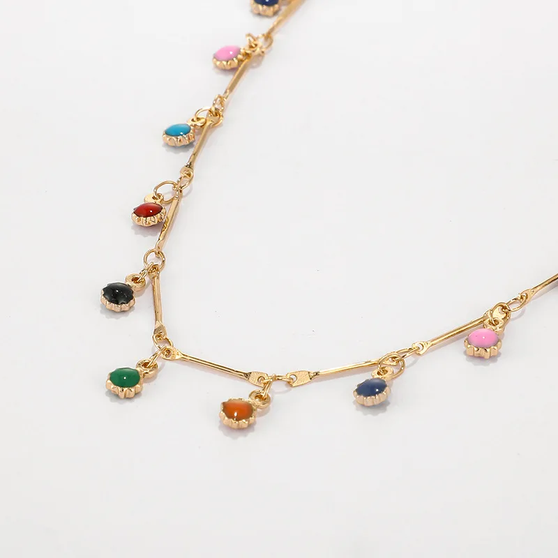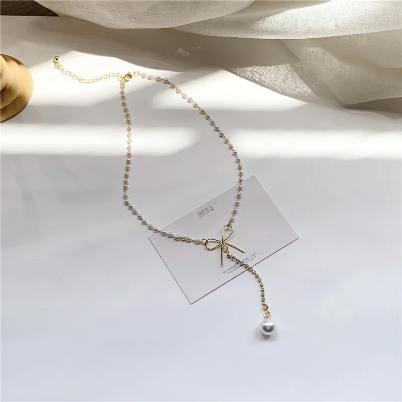 Simple Bohemia Elegant Choker Tassel Necklace for Women Colorful Drop Bead Short Chain Pearl Pendant Choker Necklaces Jewelry