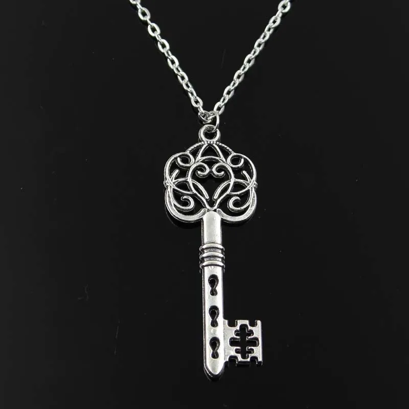 Simple Classic fashion vintage skeleton key Antique Silver Pendant Girl Short Long Chain Necklaces Jewelry for women