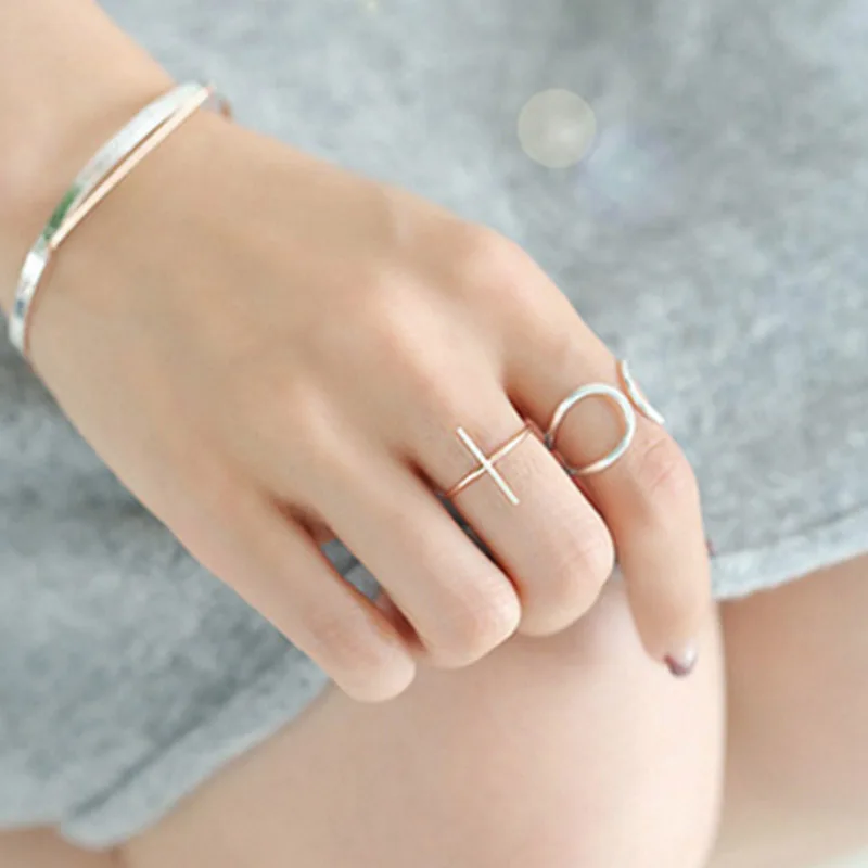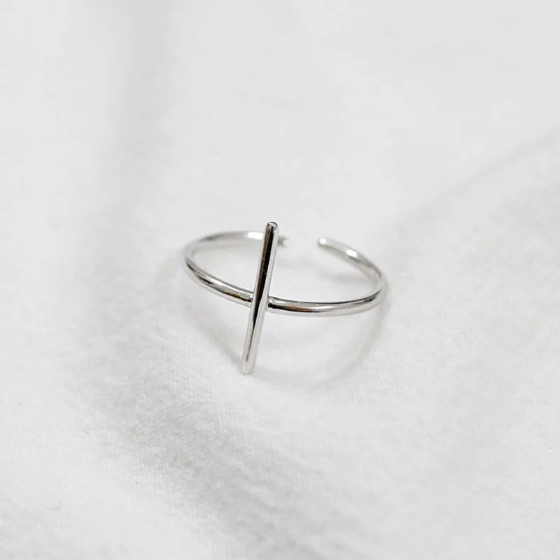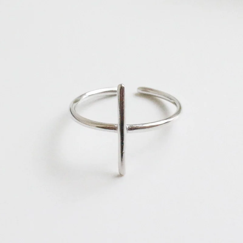 Simple Cross Authentic 100% 925 Sterling Silver Ring Religious Stacking Rings for Woman Wedding Party Accessories Nice Gift