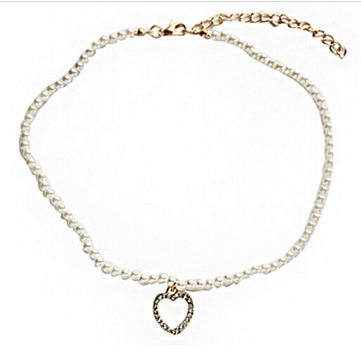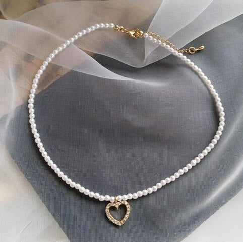 Simple Design Pearls Delicate Crystal Heart Pendant Necklace Women Jewelry