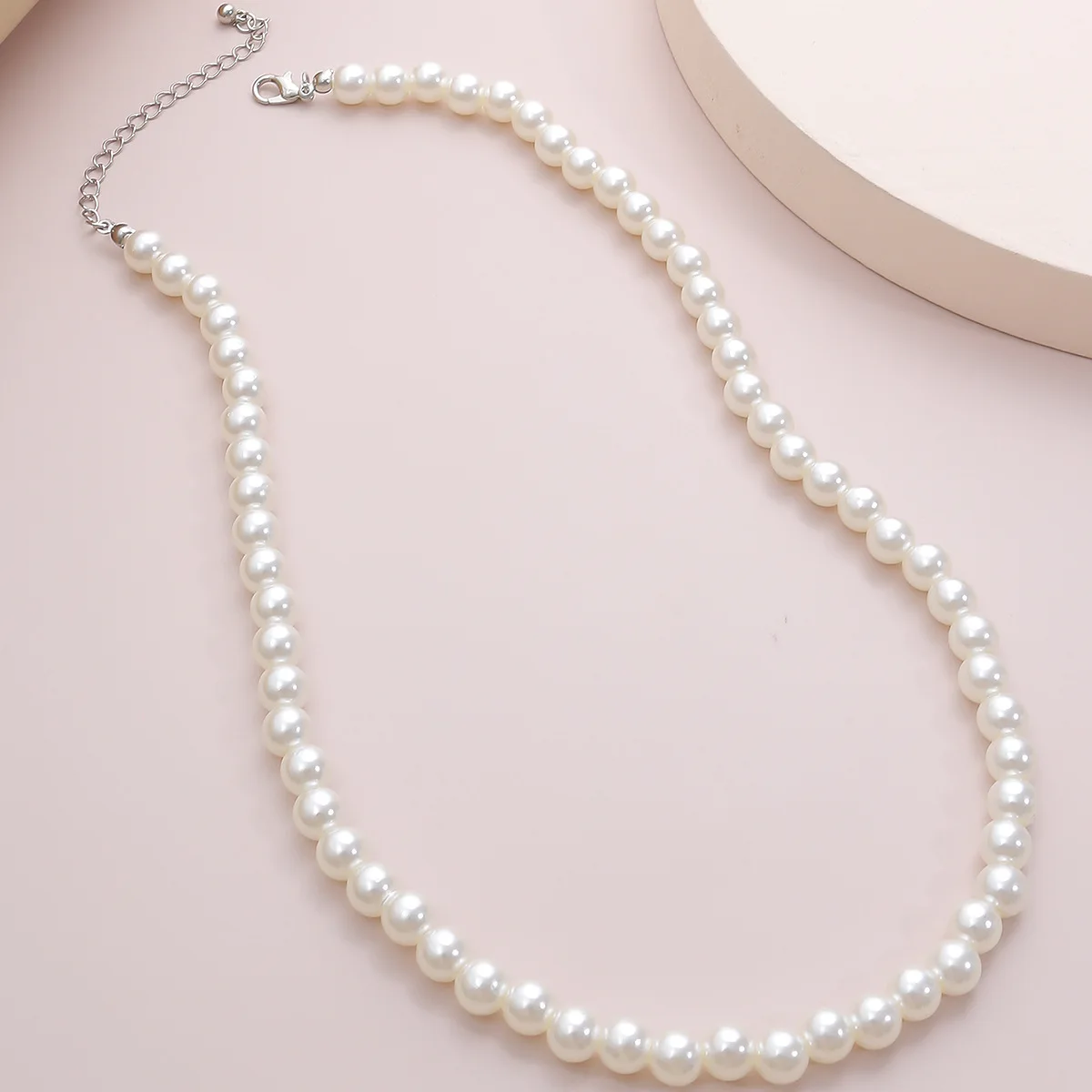 Simple Imitation Pearl Geometric Round Bead Single-layer Tassel Necklace for Women Temperament Handmade Jewelry Accessories