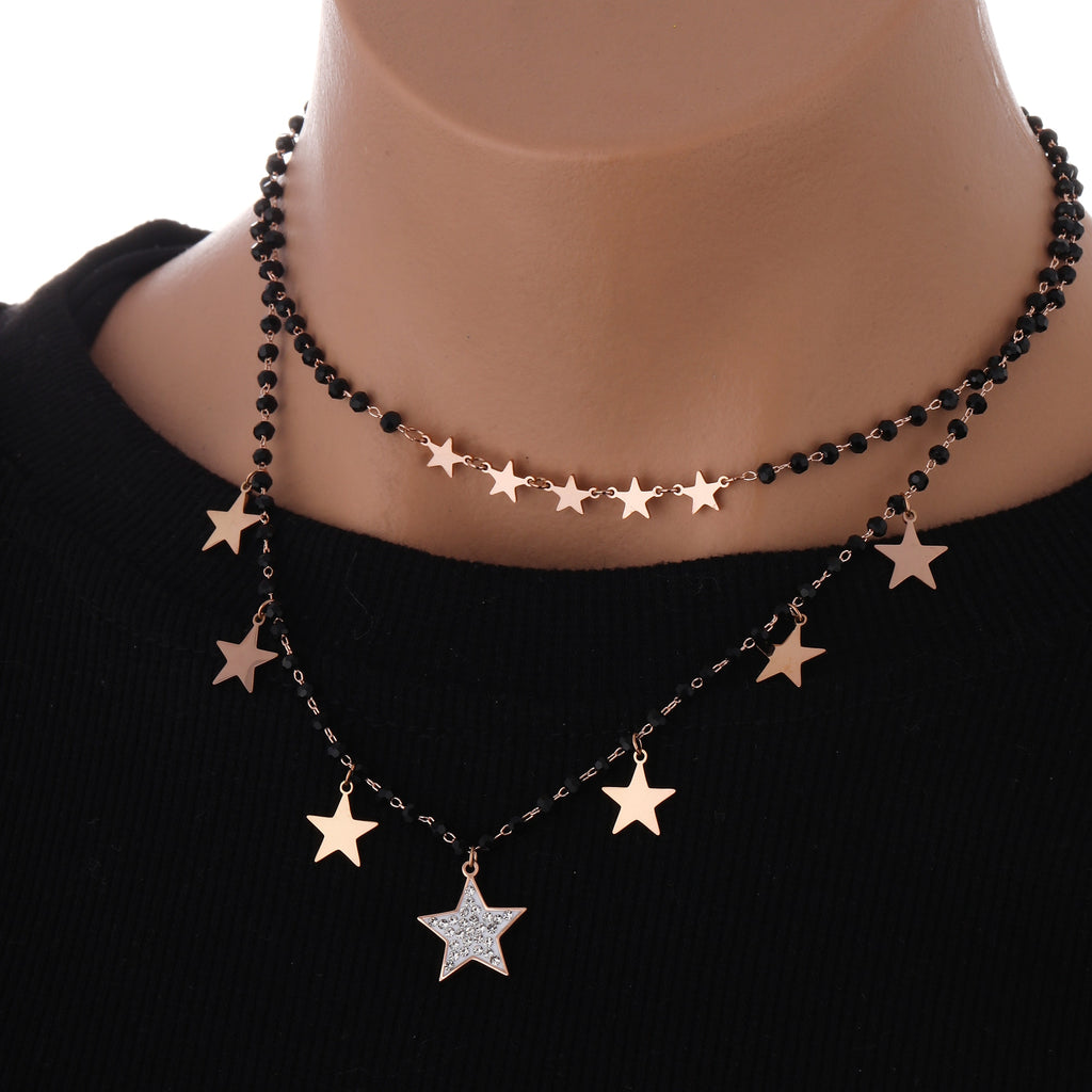 Simple Multi Stars Chain Necklace For Women Double-layer Beaded Sweety Lover Choker Necklaces Ladies Valentine Gifts