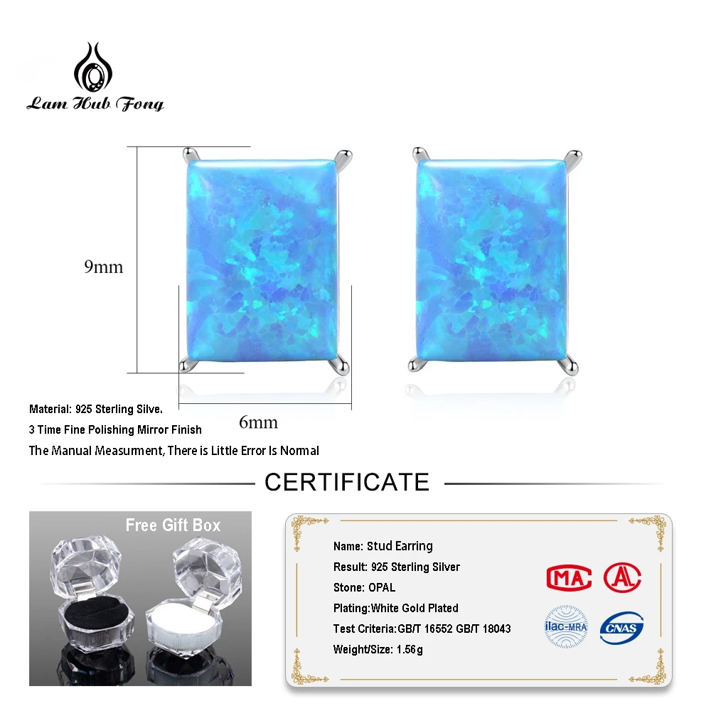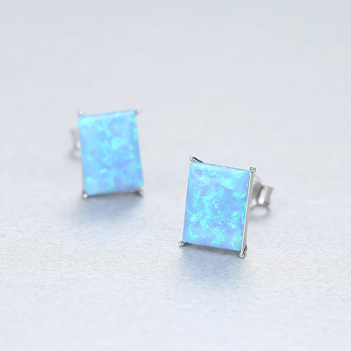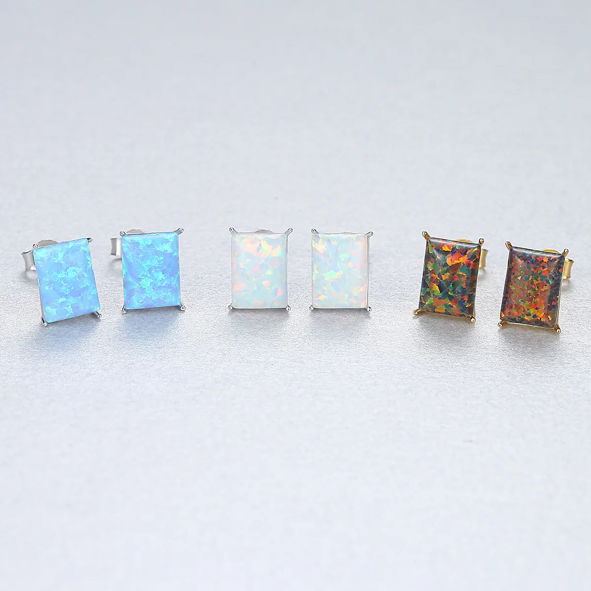 Simple rectangle Stud Earrings Blue Opal 925 Silver Earrings for Women 3 Color Classic Fashion Jewelry Style Gift