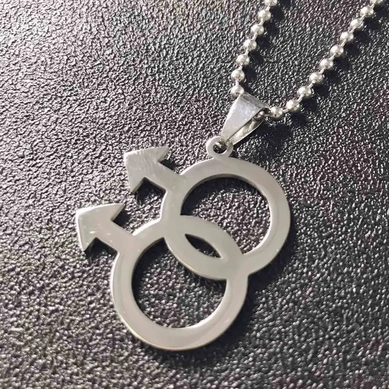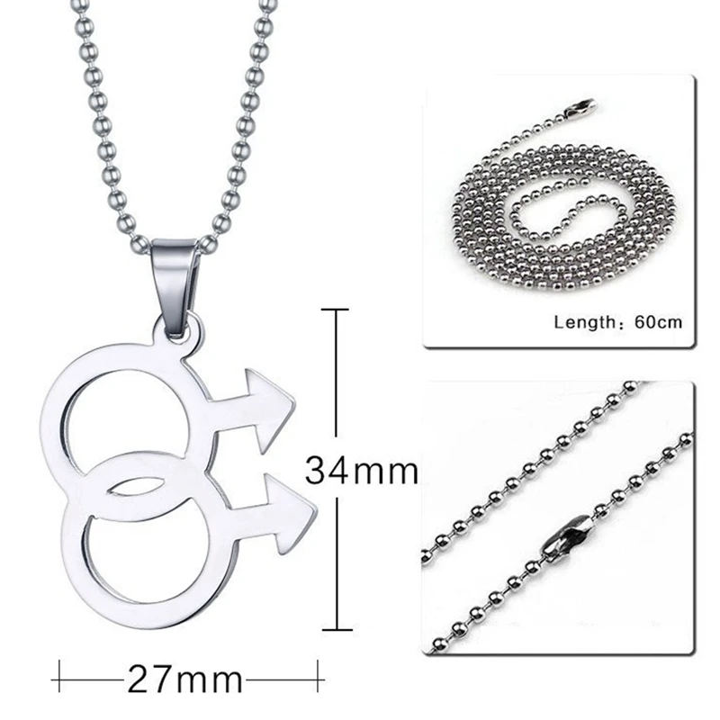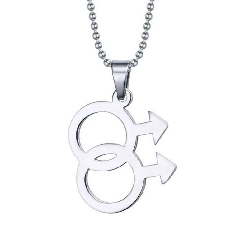 Simple Silver Color Man Logo Gay Pride Pendant Necklaces Lesbian LGBTQ Pride Beaded Chain Necklace Love Male Jewelry